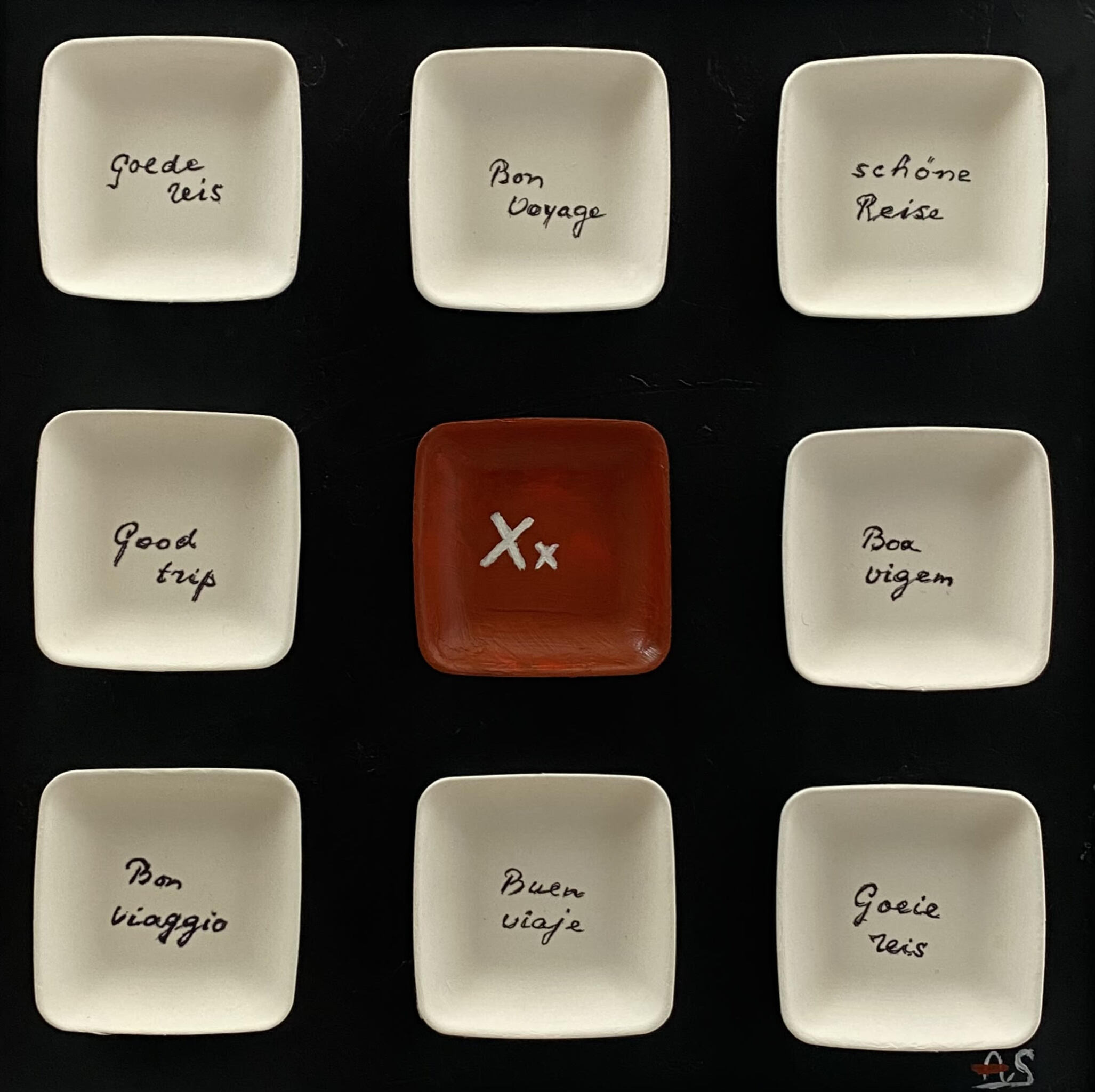 In 8 talen vertaald. Geleverd in wit passepartout met diepe zwarte lijst vanwege 3D onderdelen, achter glas. Afmeting geheel: 50cm. h x 50cm. b Beschikbaar