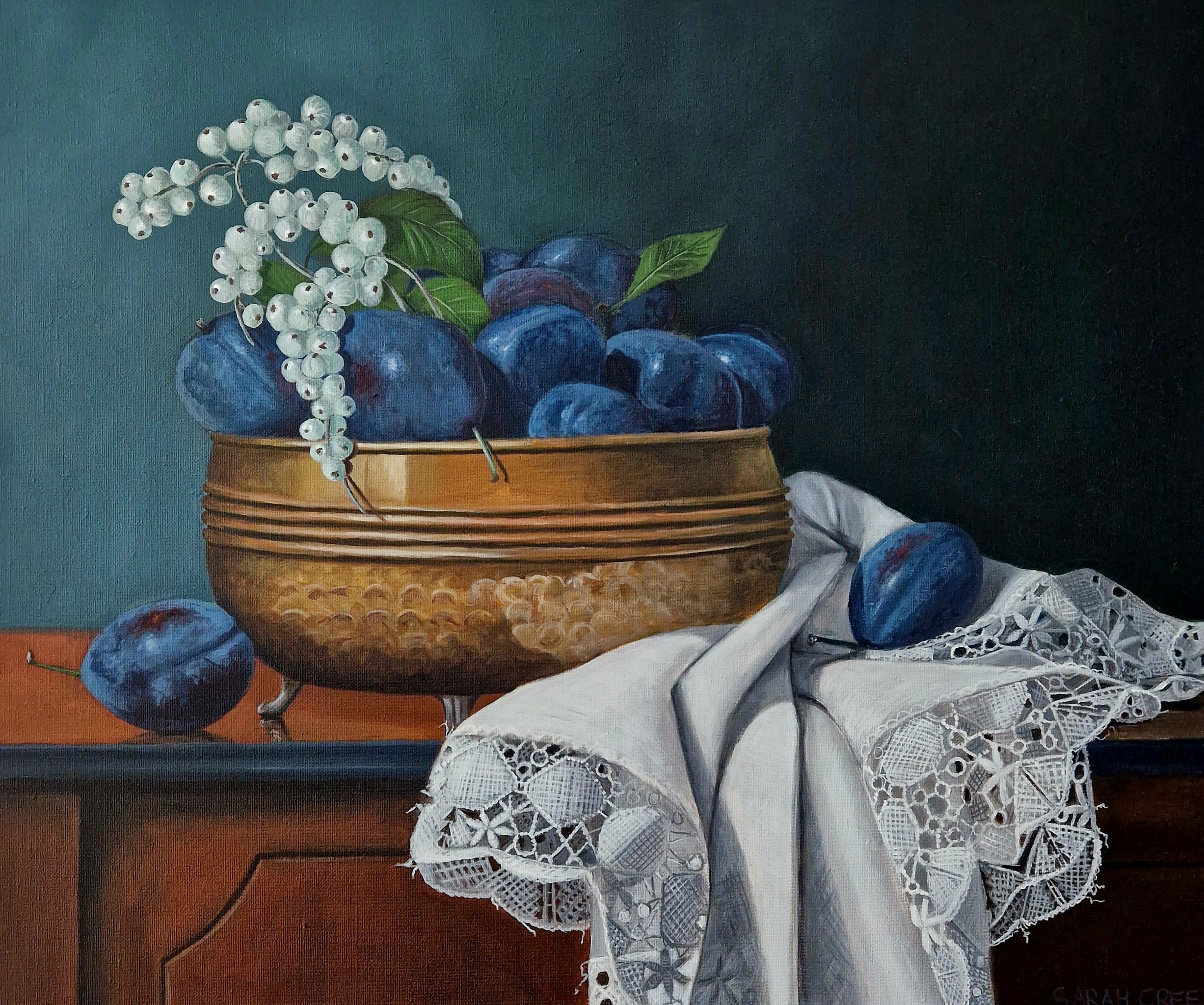 Sarah Creek schildert met acryl op canvas of linnen. Onderwerpen zijn portretten en stillevens. Sarah geeft les aan 55 talentvolle cursisten in een atelier aan huis.