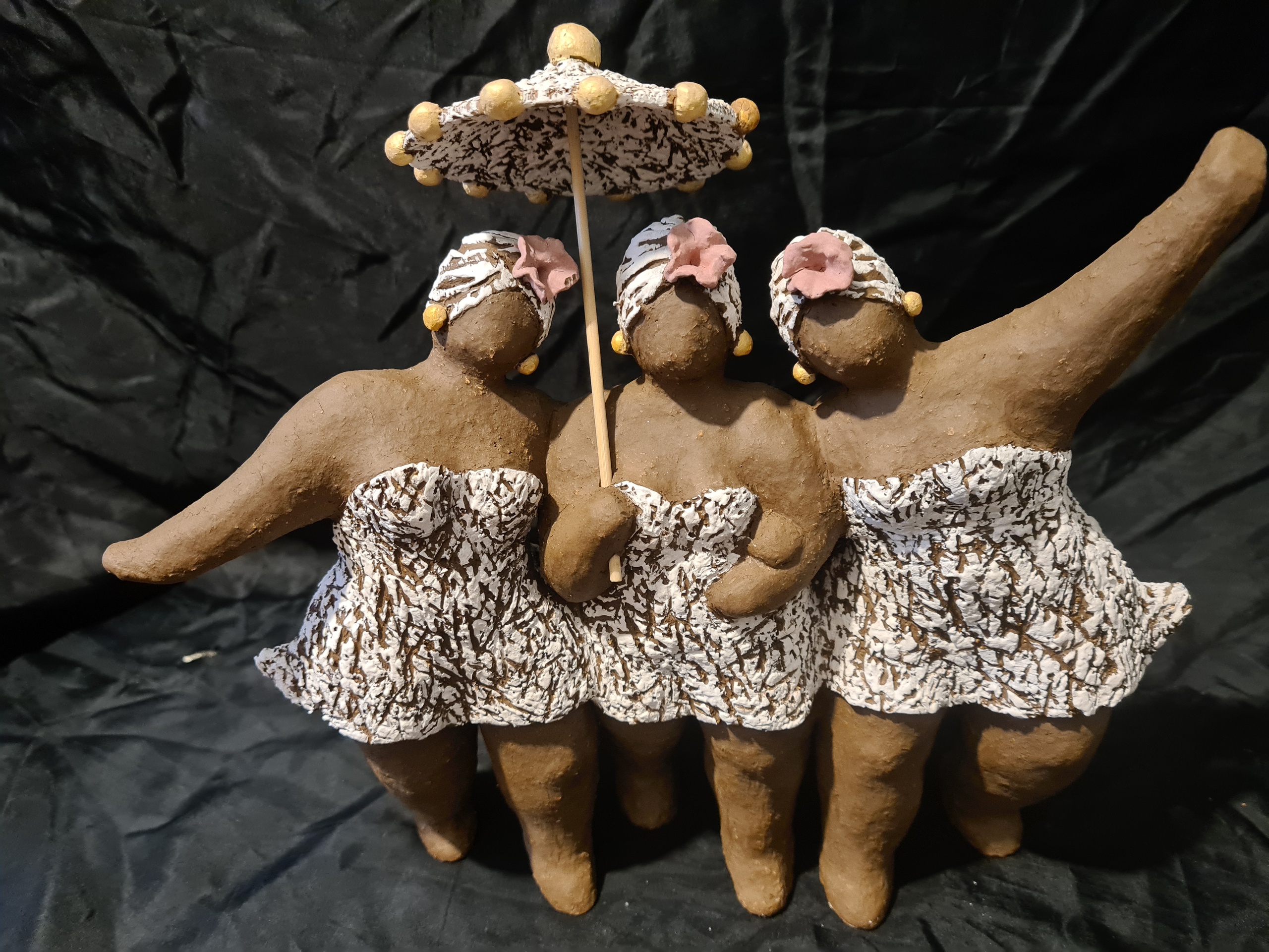 Vrouwen Groep Dans Afrika 3d Kunst Vrolijk Muziek Beelden Keramiek Caribisch