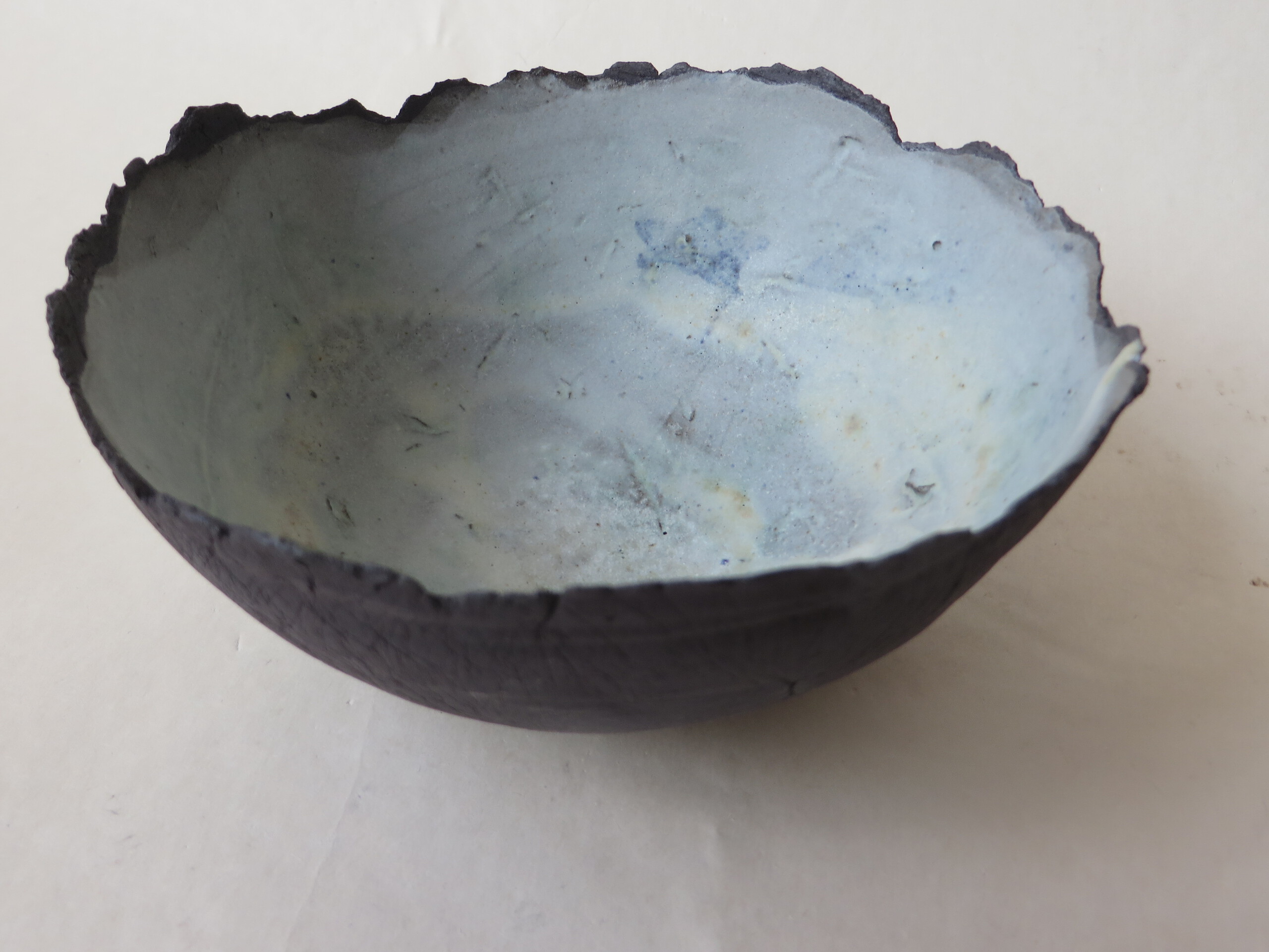 Steengoed, zwarte klei, alleen binnenin geglazuurd.