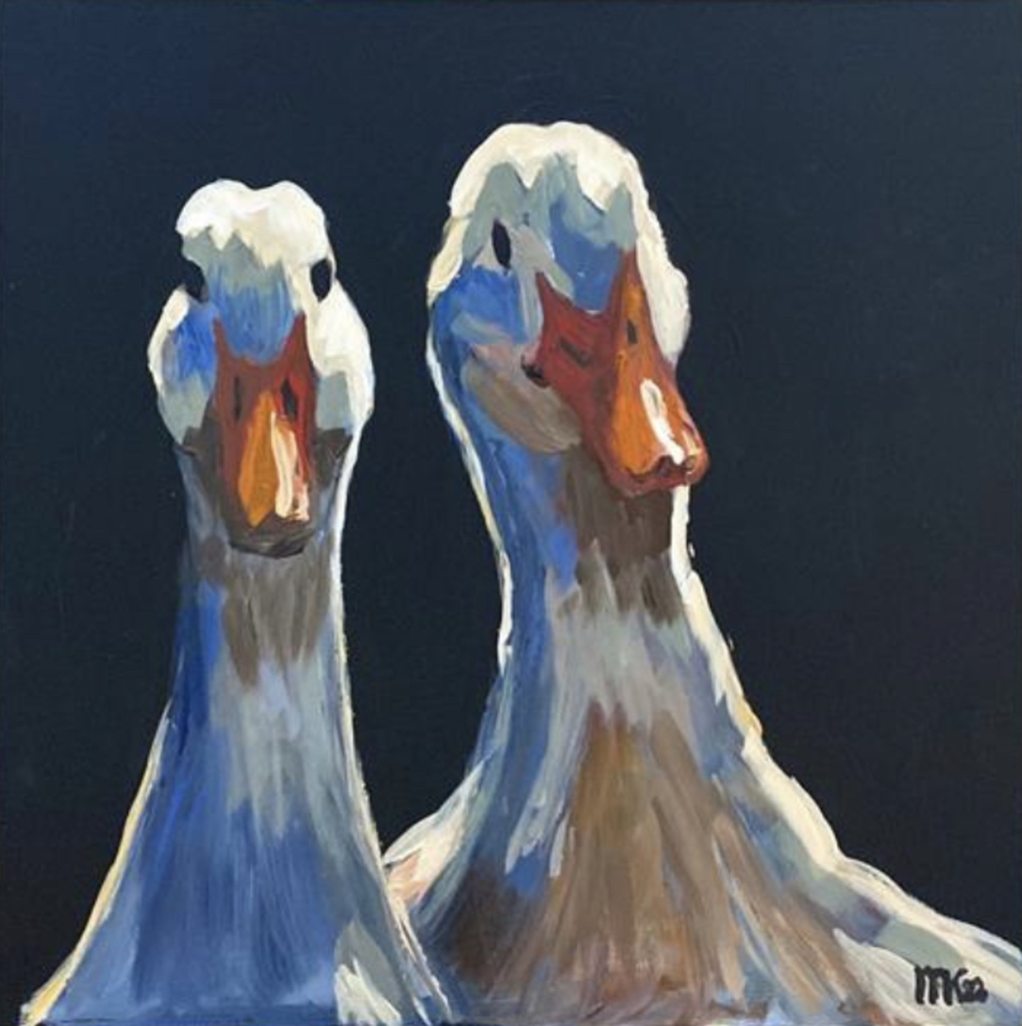 Marjolein zet haar voorwerpen met frisse kleuren en een grove toets op het doek, daarmee weet ze eenvoudige onderwerpen een ereplaats te geven