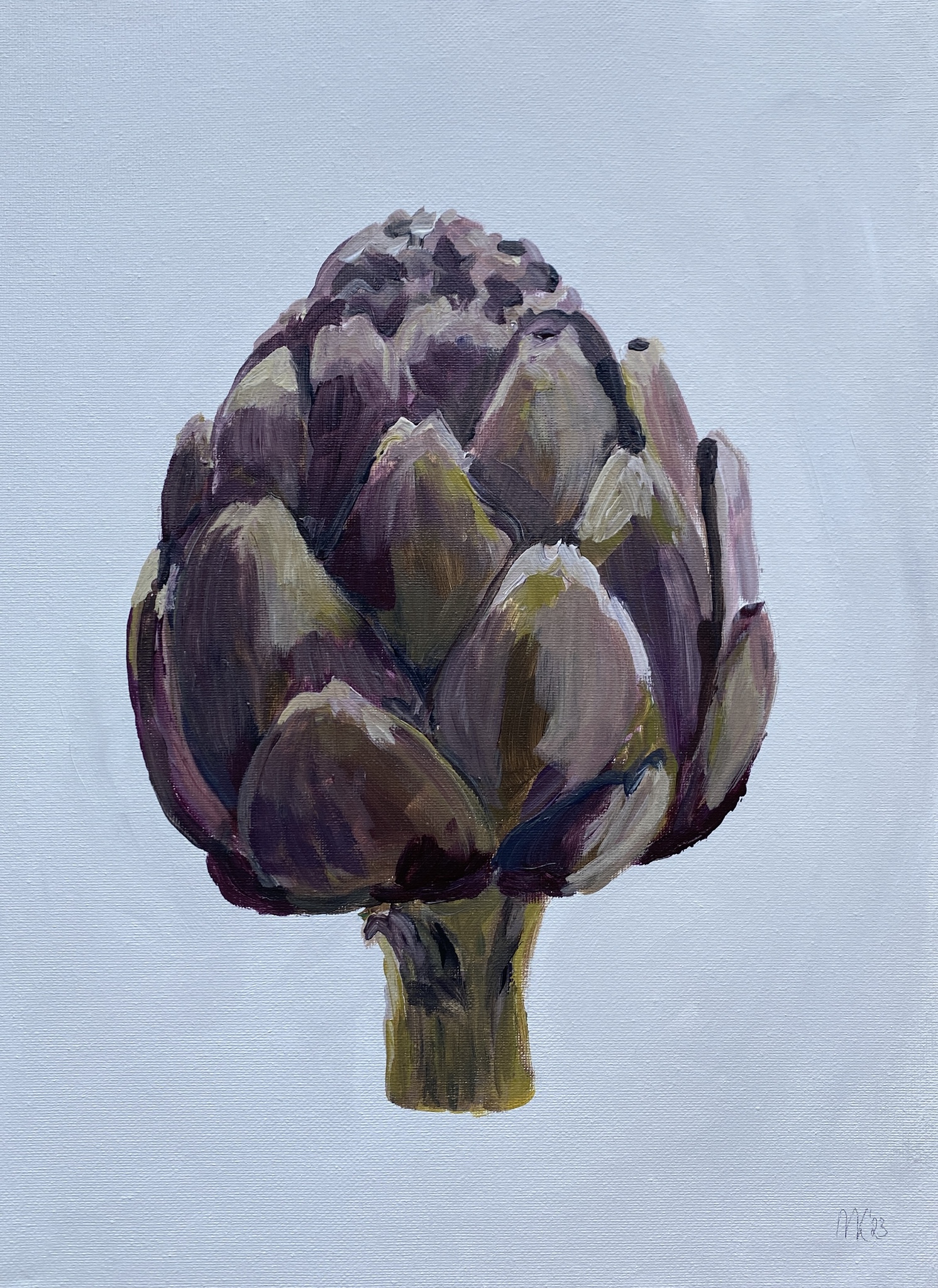 Marjolein zet haar voorwerpen met frisse kleuren en een grove toets op het doek, daarmee weet ze eenvoudige onderwerpen een ereplaats te geven