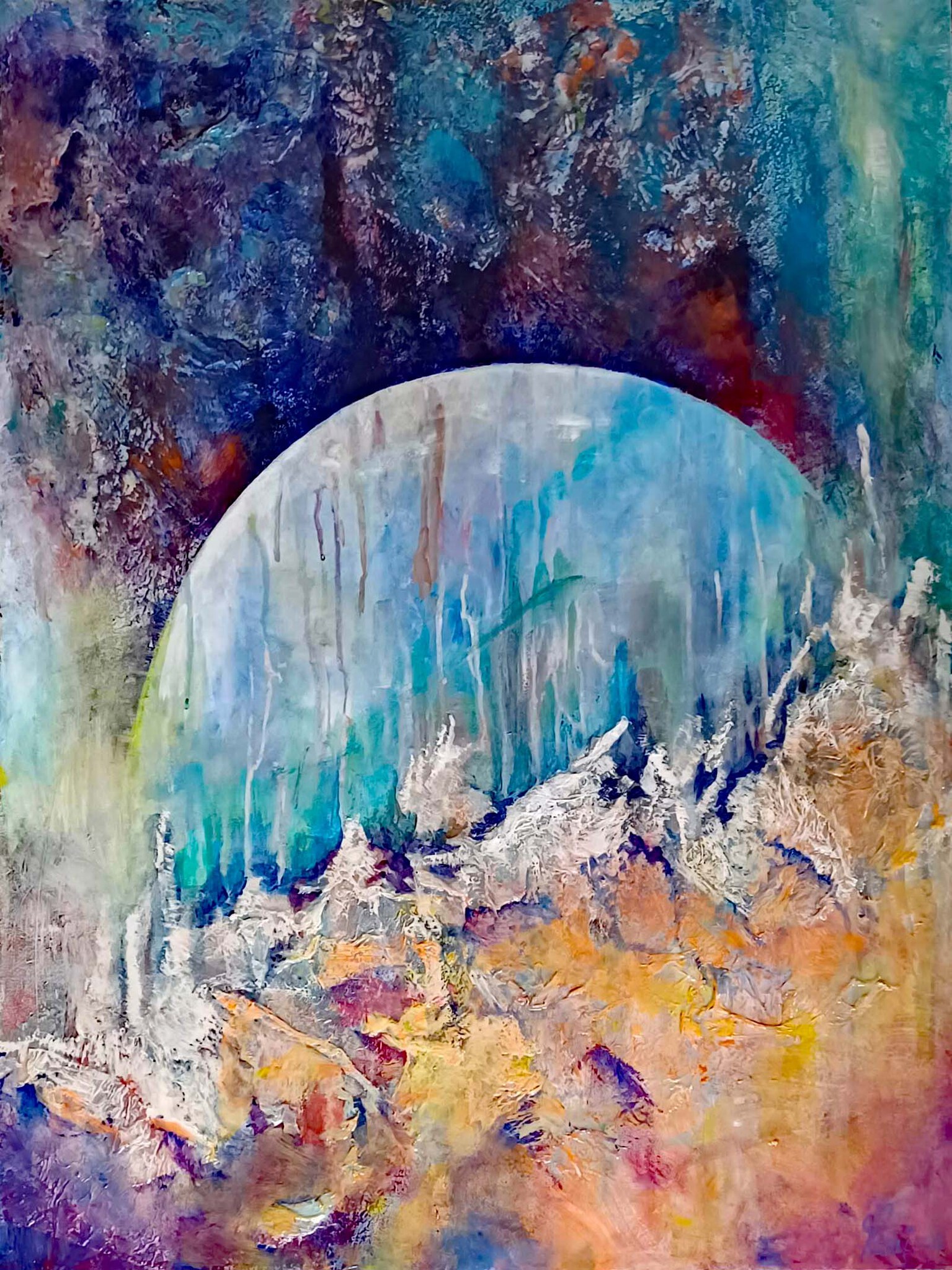 Schilderij Abstract Maan Blauwe Ruimte Gebeurtenis Opstaan Blauwemaan
