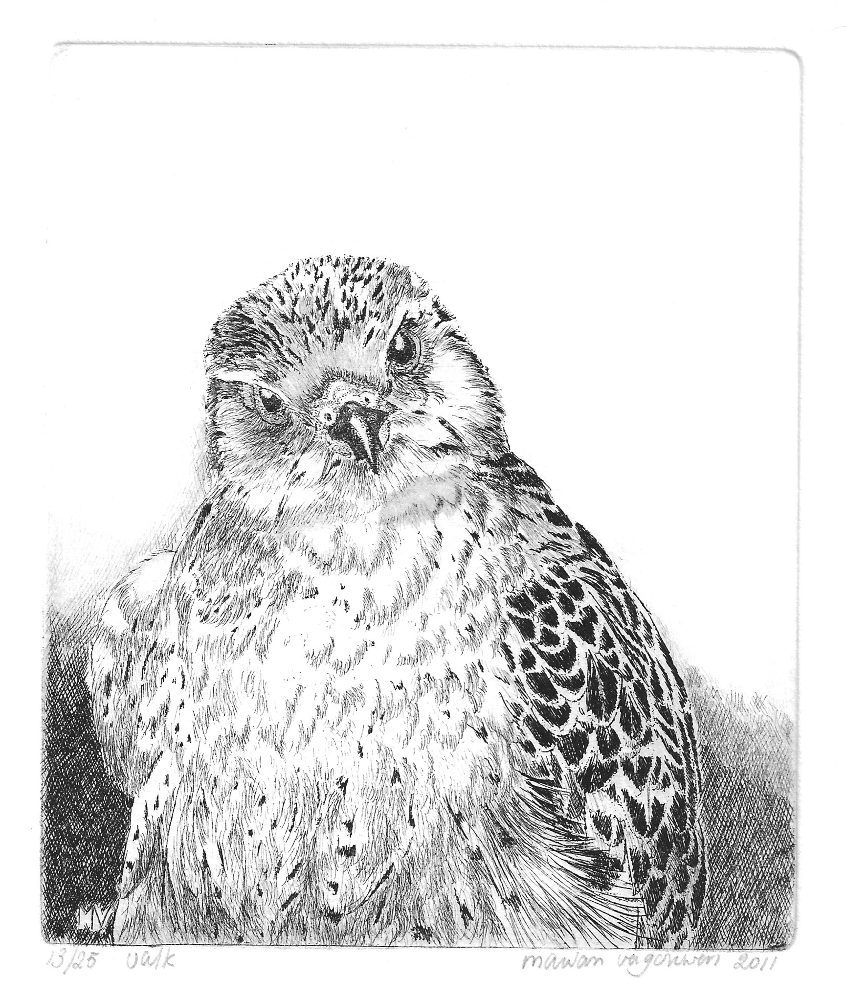 Deze Valk kijkt nieuwschierig om zich heen - oplage 25 exclusief lijst