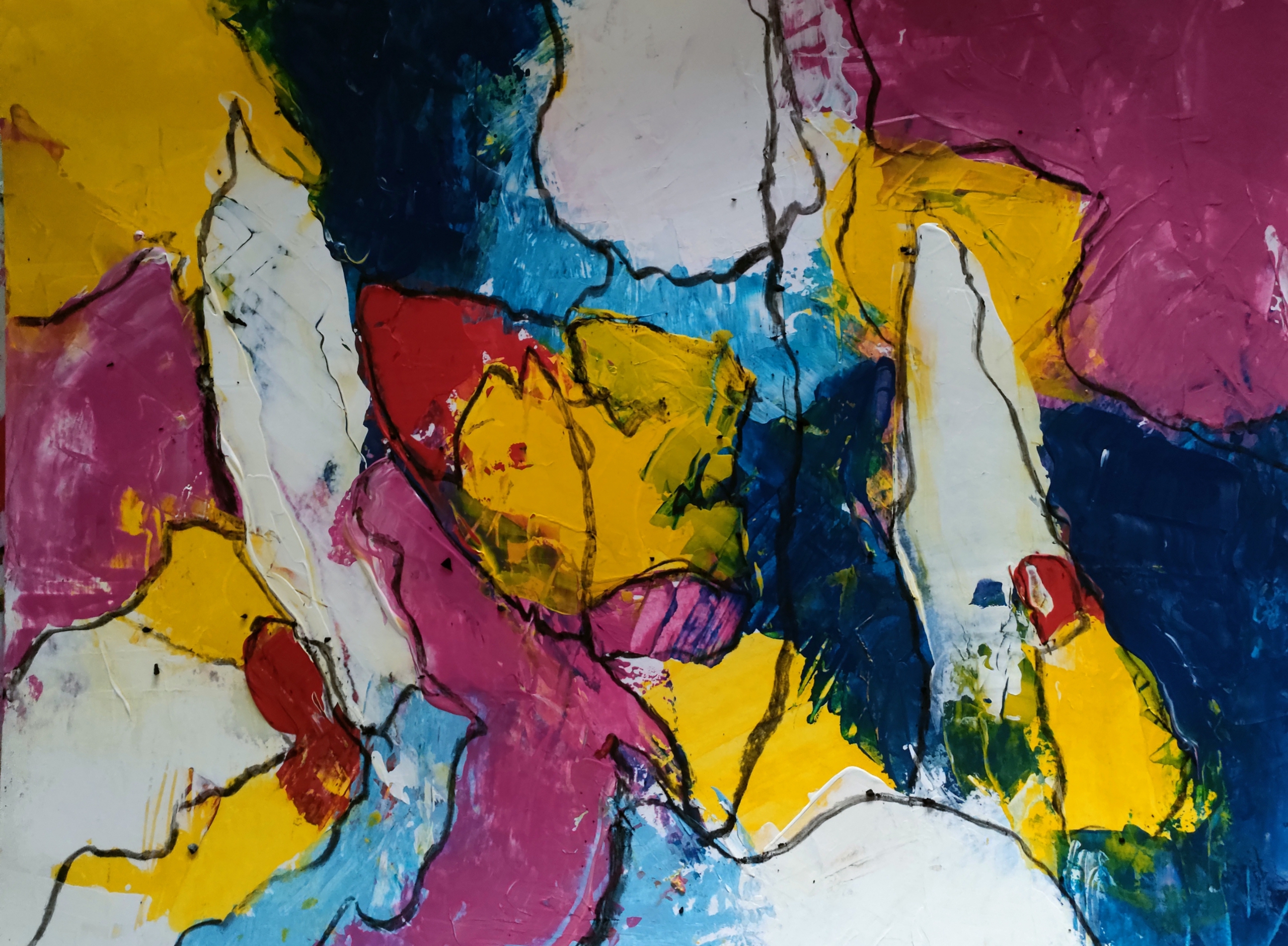 Dit werk hoort bij een serie. Een serie van 6 abstracte werken. Lijkend op elkaar maar toch weer anders .Acrylverf met posca stift..