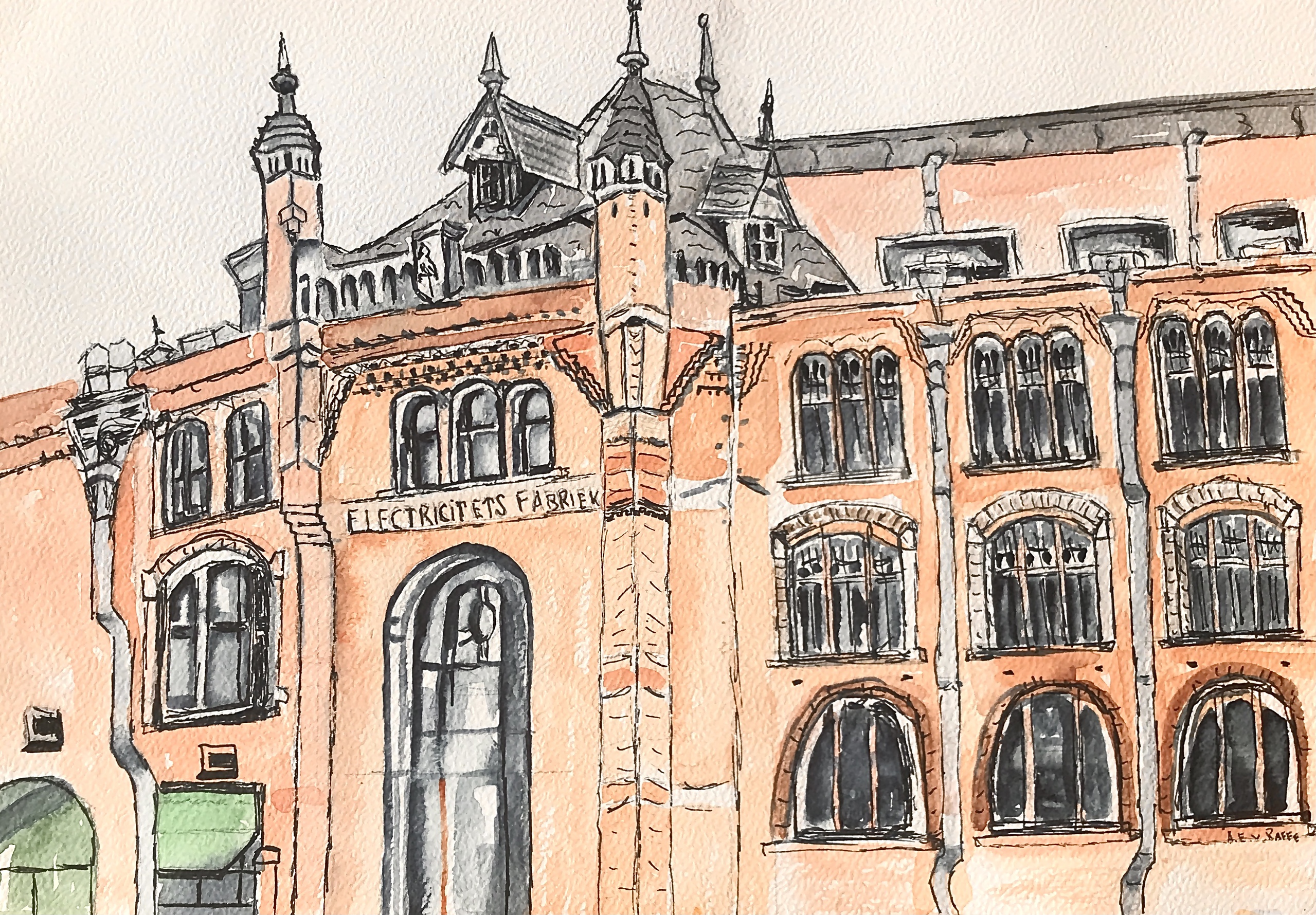Constant Rebecqueplein Den Haag Aquarel fineliner