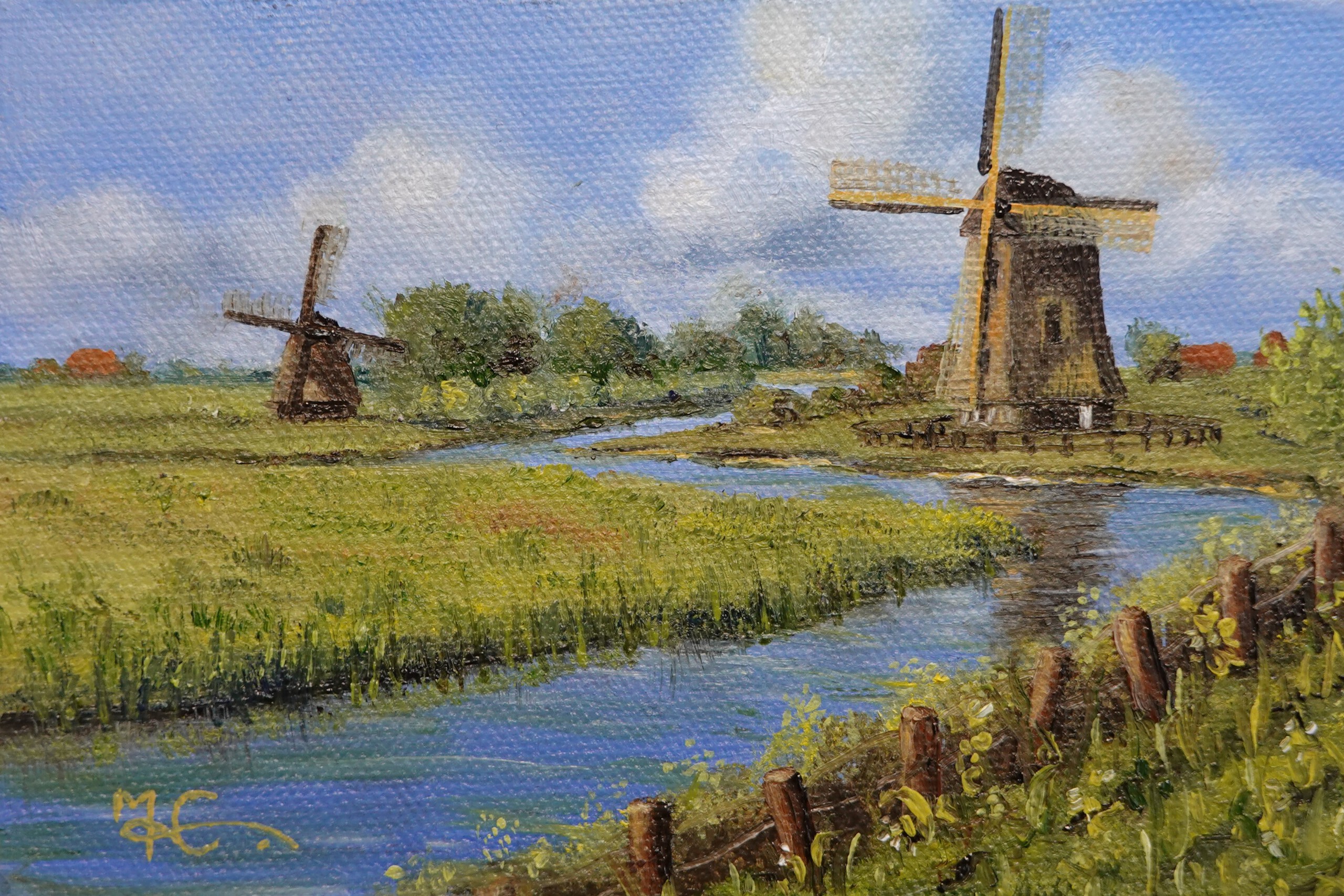 Landschap Olieverf Oilpaint Dutch Holland Landscape Molen Geschiedenis Historie Zaanse Schans