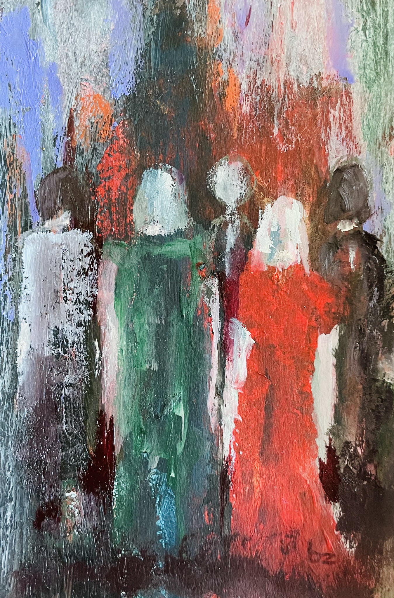 Een gefantaseerde groep vrouwen op weg naar de voorstelling