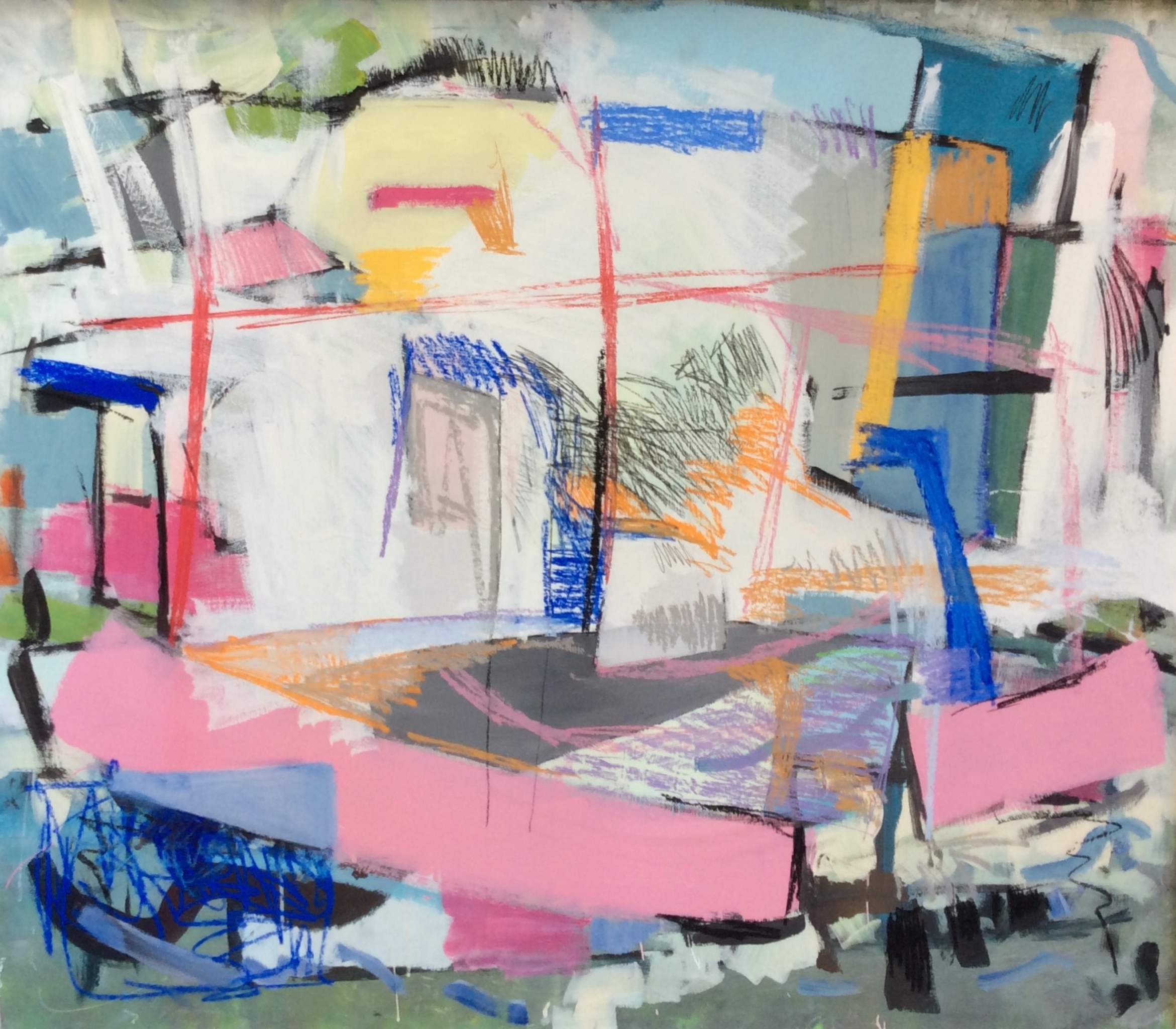 Marcel laat in zijn recente werk de andere weg zien die hij is ingeslagen. ,,In tegenstelling tot mijn eerdere werk, dat heel dicht bij de realiteit lag, vertaal ik nu wat ik waarneem naar mijn eigen werkelijkheid. Het is eigenlijk een vereenvoudigen van die realiteit, tot wat voor mij de essentie is. In die zoektocht spelen kleur en compositie een hoofdrol’.