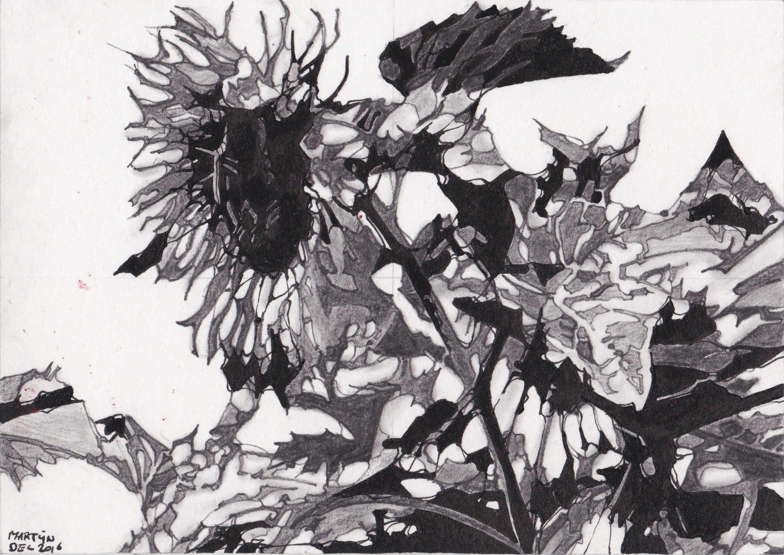 Een beeld van een zonnebloem, gebaseerd op een filmstill uit een oude Russische film.
