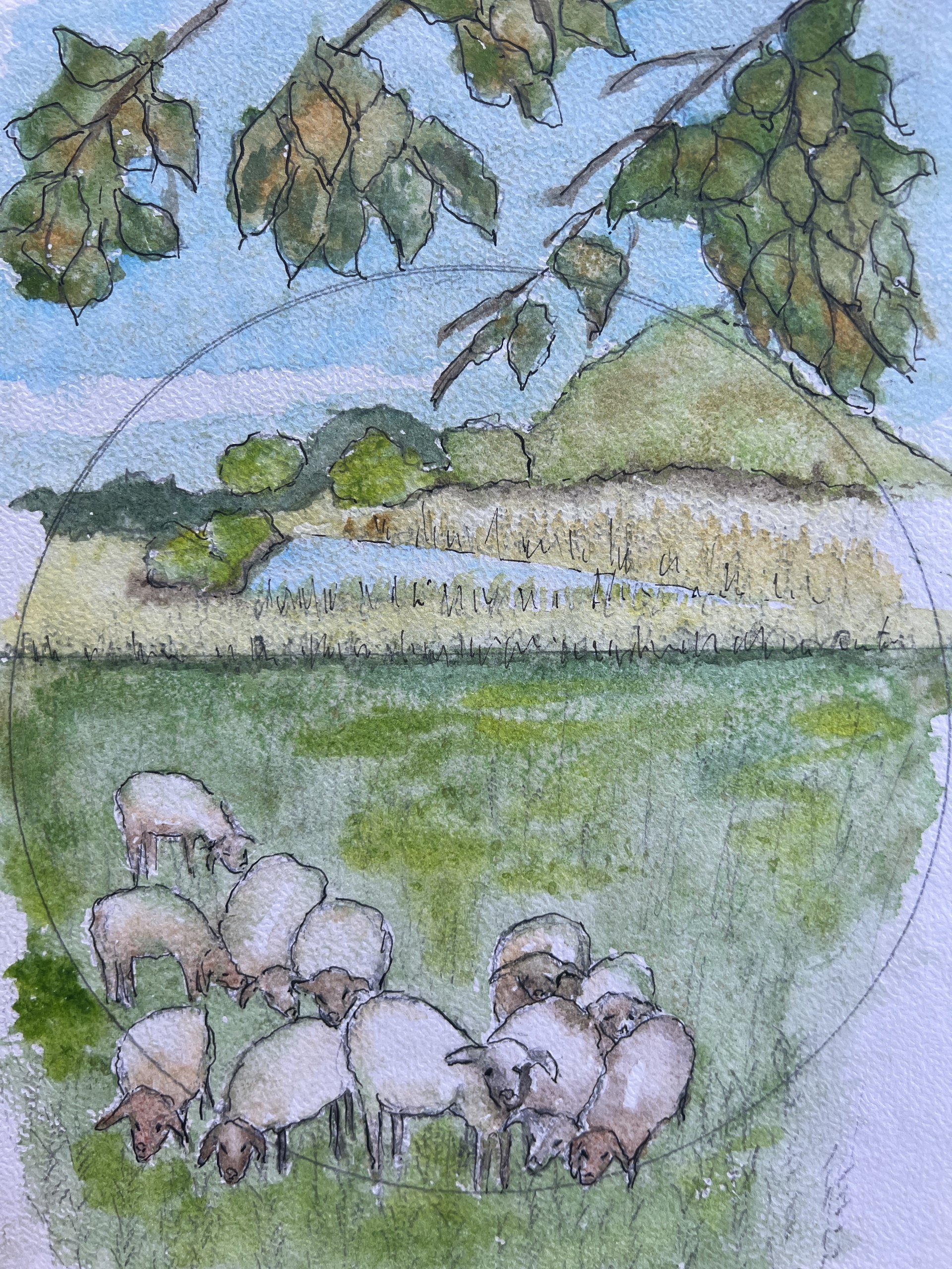 Aangezien ik elke dag uren in de natuur wandel, wilde ik dit op papier en aquarellen laten zien. Ik wilde anderen laten genieten van de rust die het uitstraalt. Het groene gras met de schapen die dicht en dromerig bij elkaar staan. Op de achtergrond het bos en een water waar de kikkers vrolijk kwaken en de libellen vrolijk rondvliegen. Gesigneerd Ik heb dit medium gebruikt omdat het zo mooi vloeit en ik weet niet welke kant het op gaat, Het gebruik van verschillende soorten zout geeft ook een andere structuur aan de aquarel Hoogte 30 cm x 21 cm. Je moet het nog inlijsten.