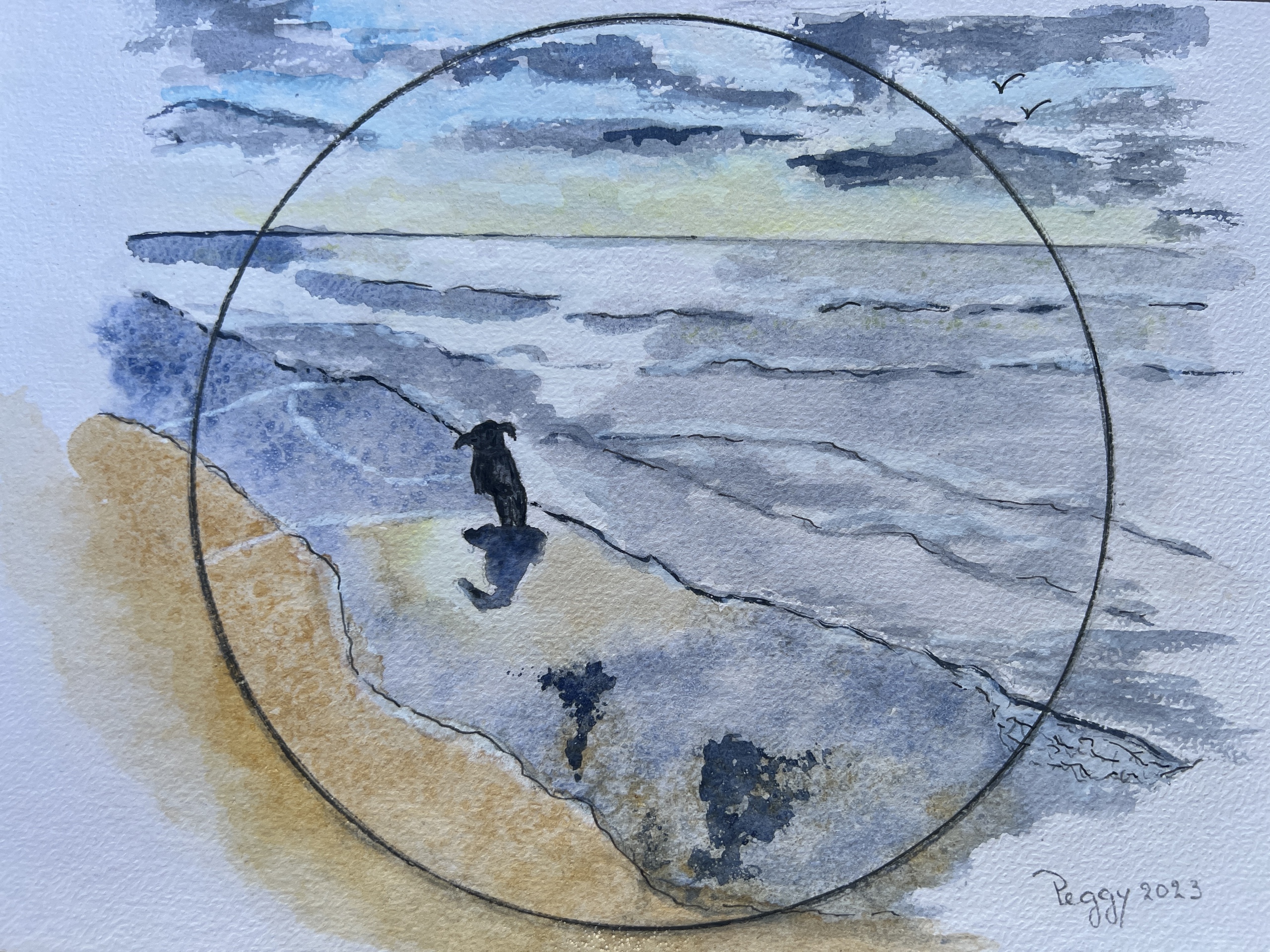 Aangezien ik elke dag uren in de natuur wandel, wilde ik dit op papier en aquarellen laten zien. Ik wilde anderen laten genieten van de rust die het uitstraalt. Heerlijk rennen op het strand in de namiddag het begon al wat te schemeren met een licht oranje gloed, nat van het zoute zeewater. Gesigneerd Ik heb dit medium gebruikt omdat het zo mooi vloeit en ik weet niet welke kant het op gaat, Het gebruik van verschillende soorten zout geeft ook een andere structuur aan de aquarel Hoogte 30 cm x 21 cm. Je moet het nog inlijsten.