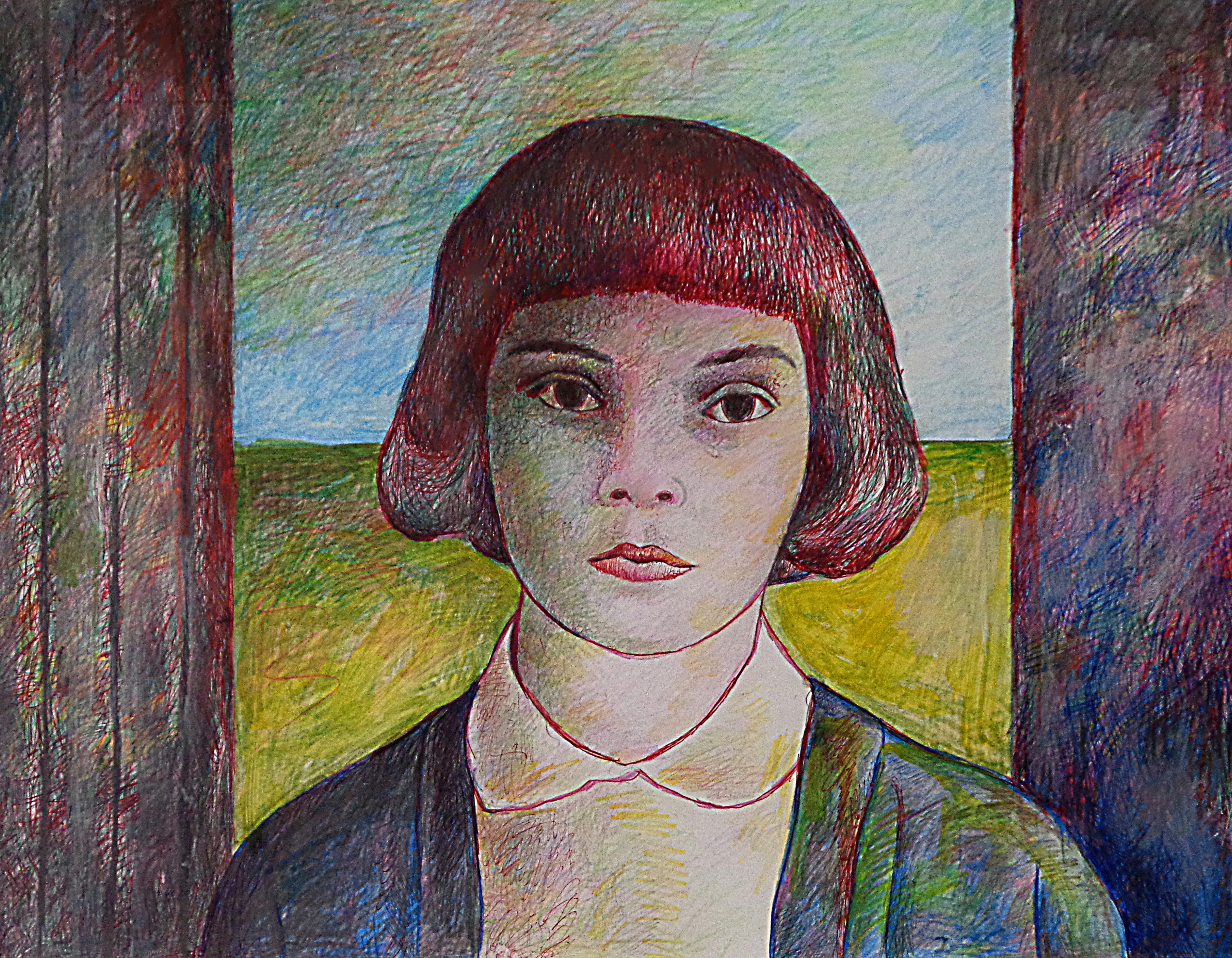 Vrij werk in ballpoint en kleurpotlood