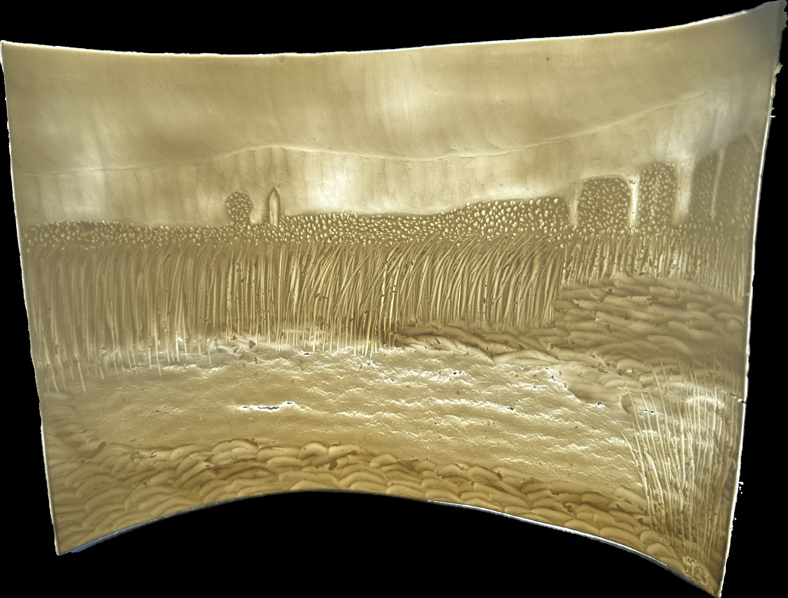 Keramisch landschap van de Nieuwkoopse plassen, transparant opgebouwd uit porselein van verschillende diktes en structuren