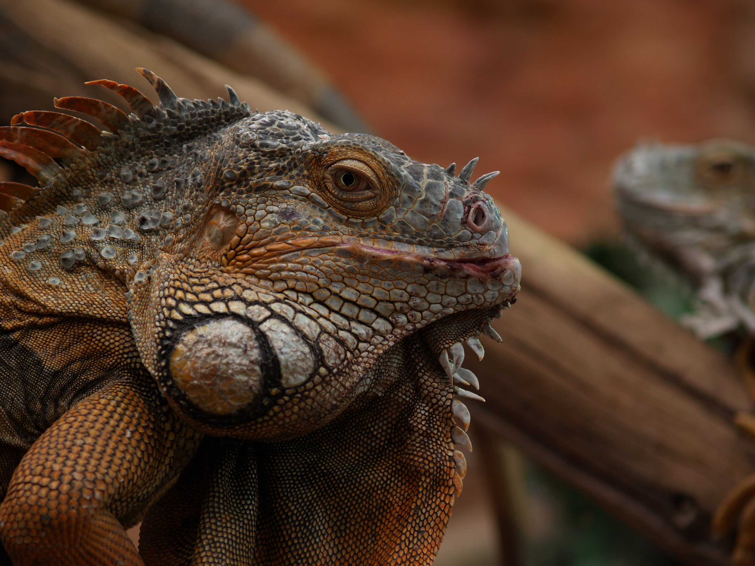 Prachtige leguaan die je rustig opneemt. Ingelijst in glas in 10 cm. breed passepartout.