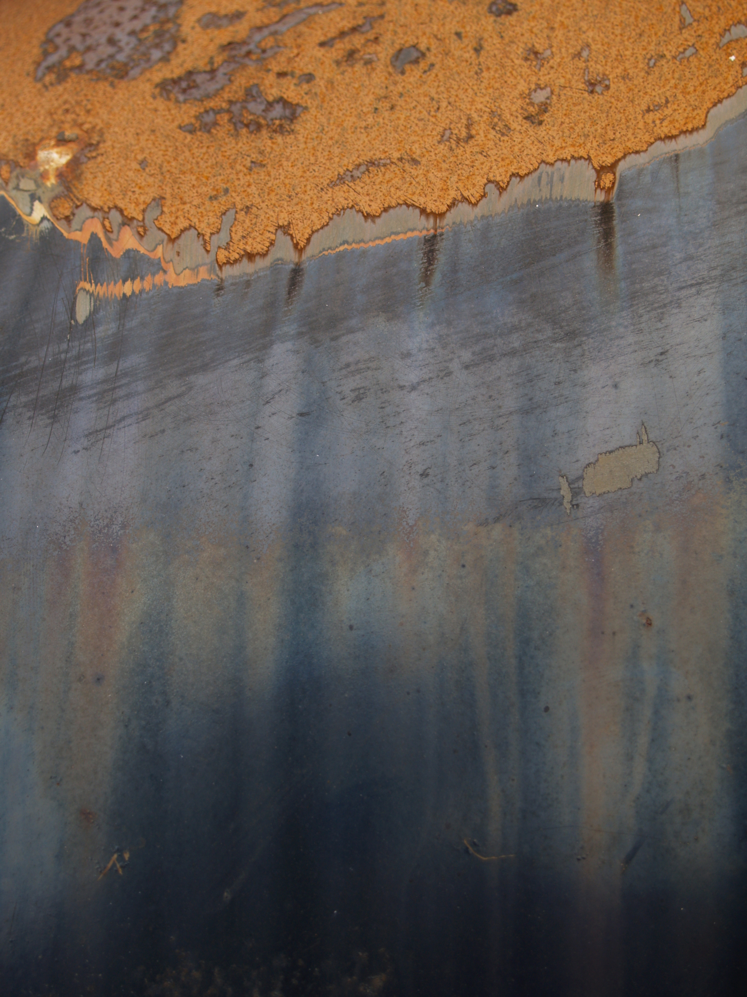 Roestend metaal wat een mooi effect geeft. Ingelijst in glas in 10 cm. breed passepartout.