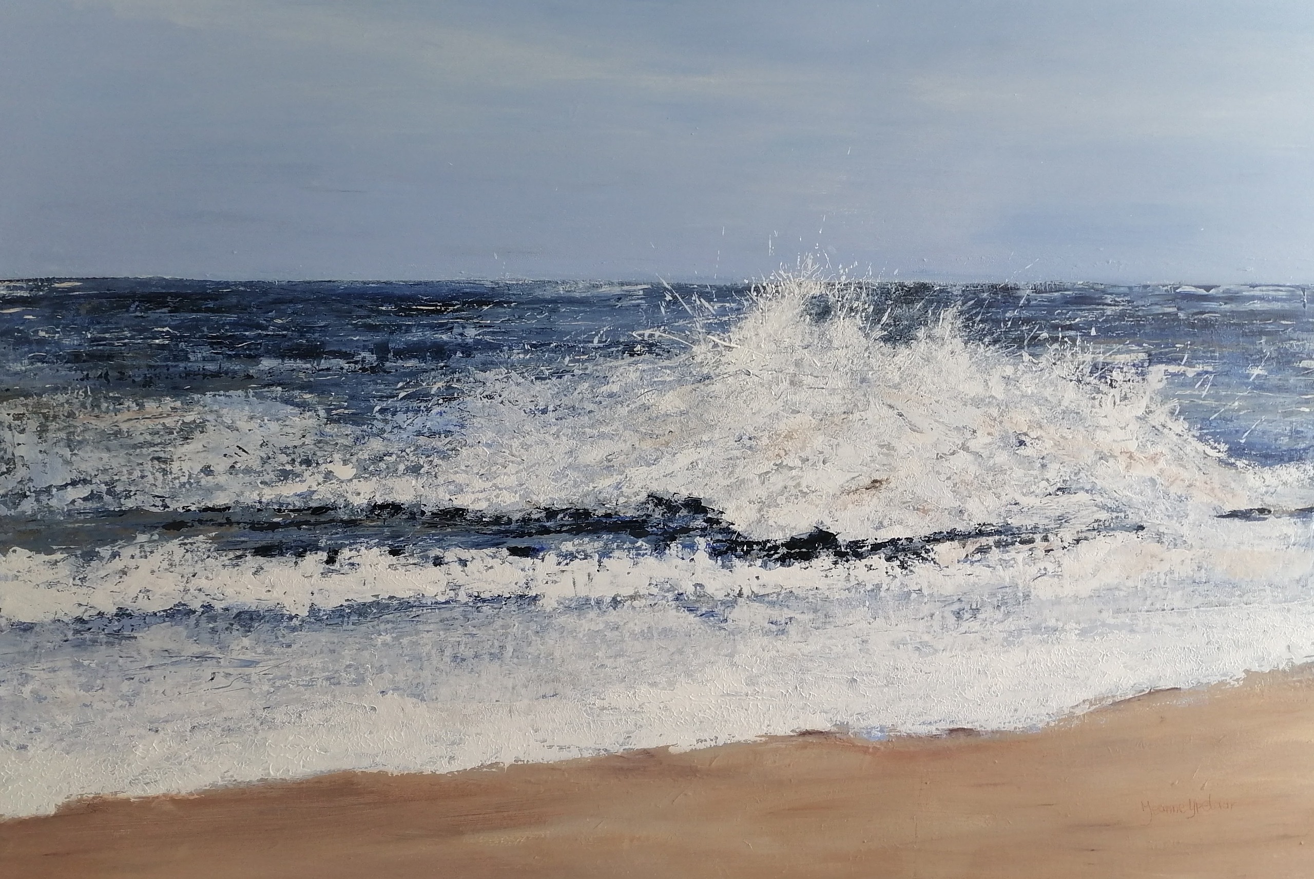Mijn naam is Jeanne IJpelaar. Geboren in Loon op Zand. Als kind was ik altijd met potlood en verf in de weer. Jaren heb ik niets gedaan totdat ik weer in aanraking kwam met schilderen. Ik heb diverse workshops en cursussen gevolgd. Schilderen is voor mij kleur, verf, geur, nadenken en de tijd vergeten. Vaak staat er muziek op en dan lijkt het of ik in een eigen wereld vertoef waar ik heerlijk alles kan vergeten. Het liefst werk ik met aquarel en acryl verf met daarbij diverse materialen zoals zand, schelpen, papier, draad e.d. die ik dan verwerkt. Het is een uitdaging om met deze materialen een schilderij te maken waarvan ik kan zeggen dat het klopt. Schilderen is voor mij dan ook een uitlaatklep, even alles vergeten en bezig zijn met het maken van iets moois.