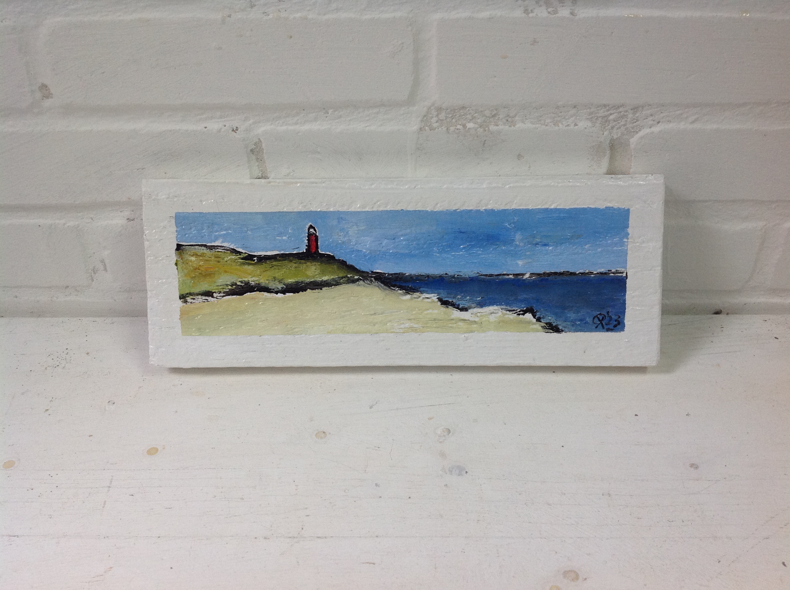 Texels werk. Vuurtoren De Cocksdorp. 12 x 31 x 2 cm. VERKOCHT.
