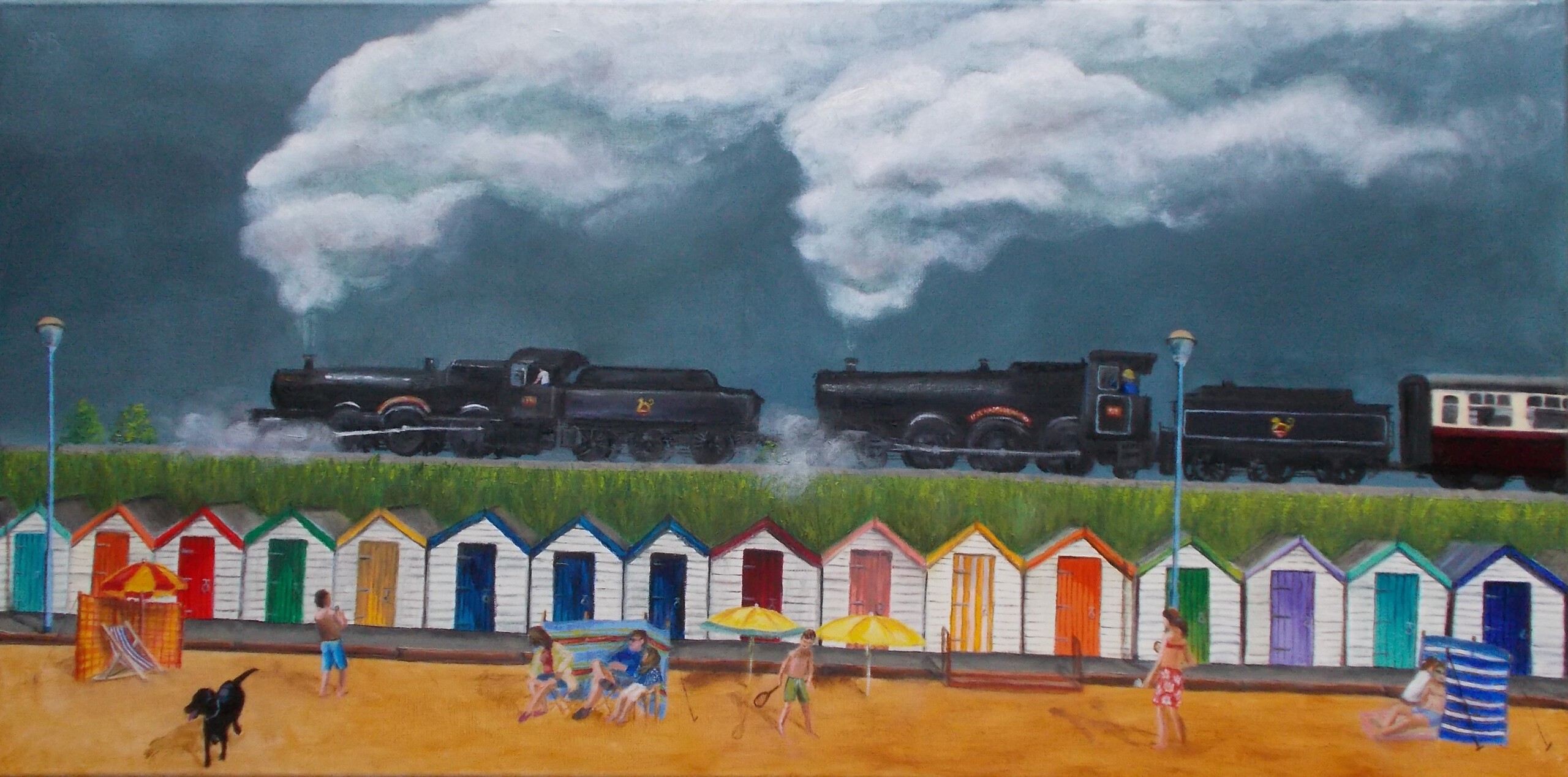 Strandgezicht Locomotief Engeland Stoomtrein