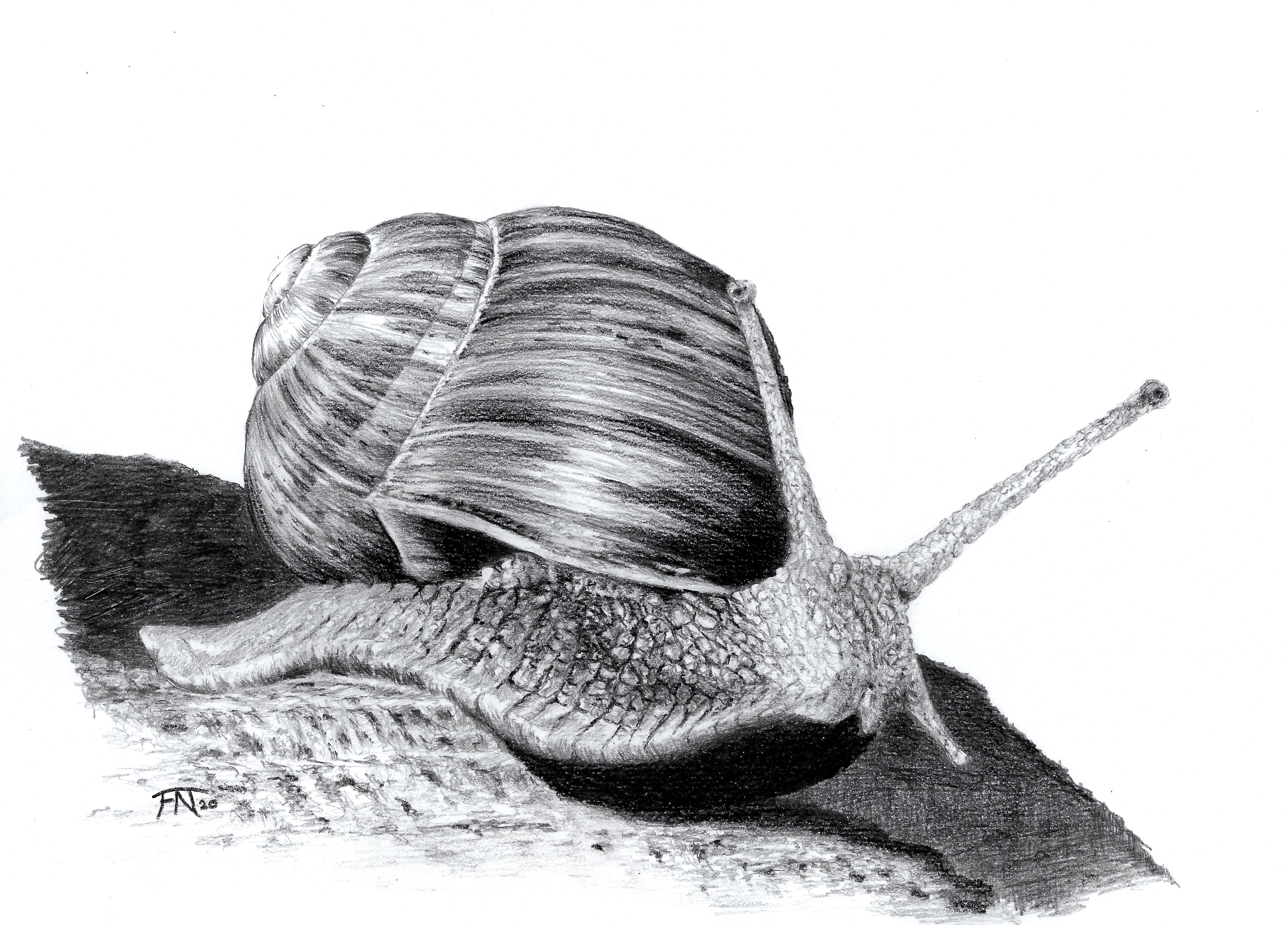 Deze slak zat in onze achtertuin en was een mooi model om te tekenen.