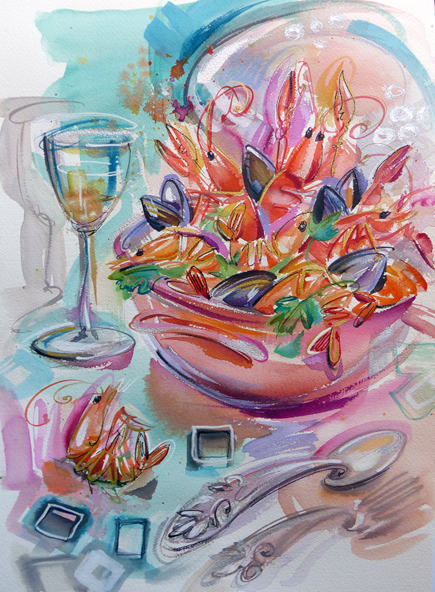 Restaurant Food Watercolor Seafood Portugal Fish Happy Algarve Cataplana