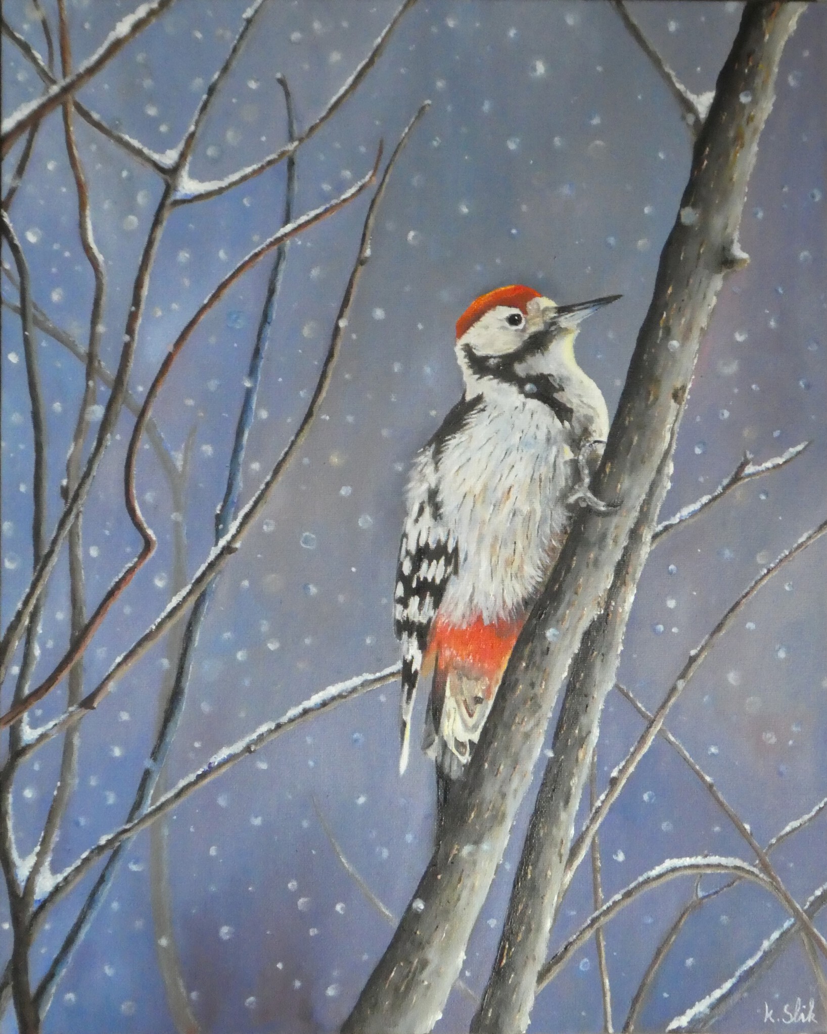 De bonte specht in de winter