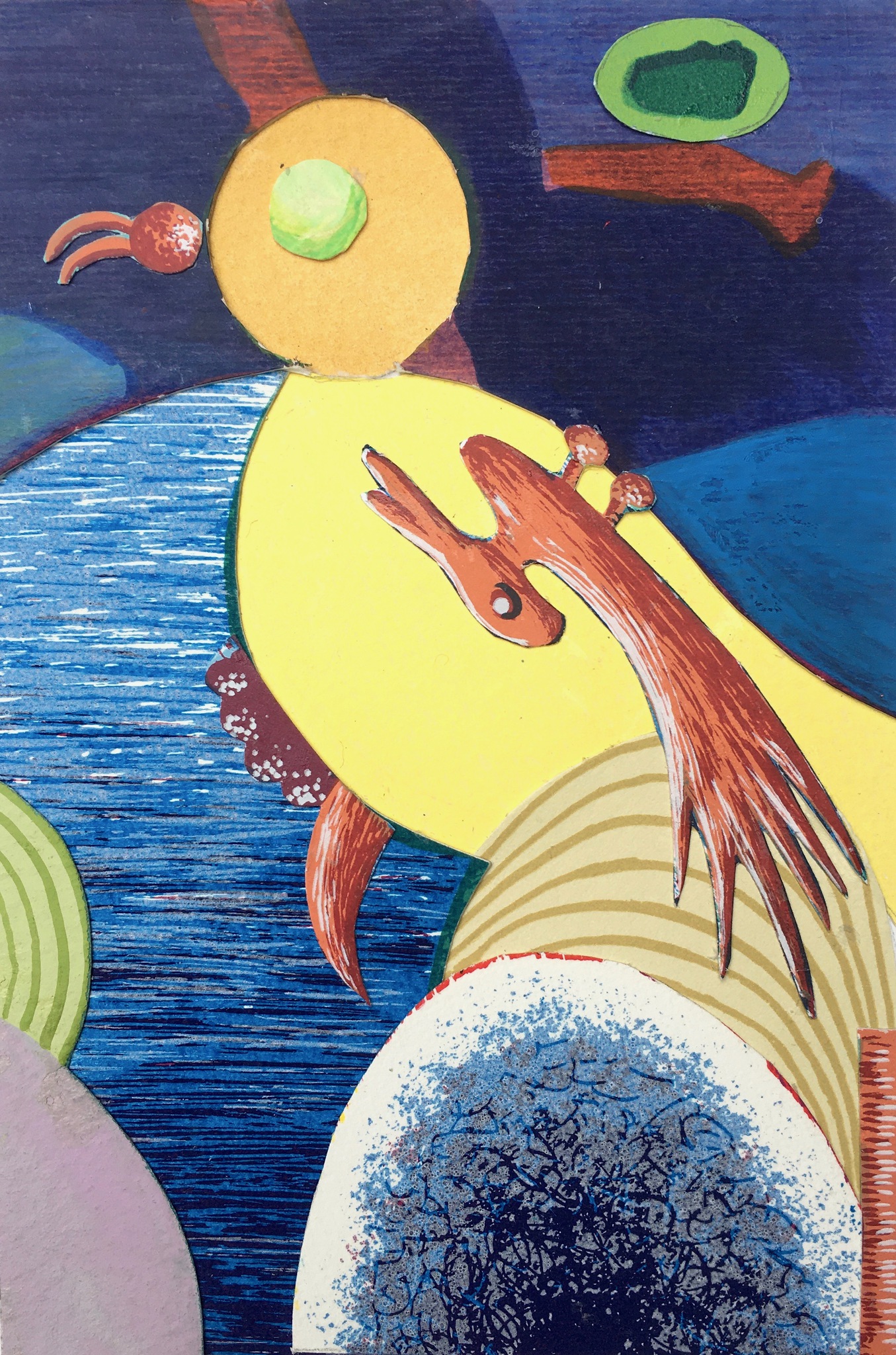 Mijn werk is zeer kleurrijk. Ik balanceer graag op de grens tussen figuratief en abstract, waarbij ik mijn eigen droomwereld creeer. Mijn inspiratie haal ik uit de natuur en het materiaal.