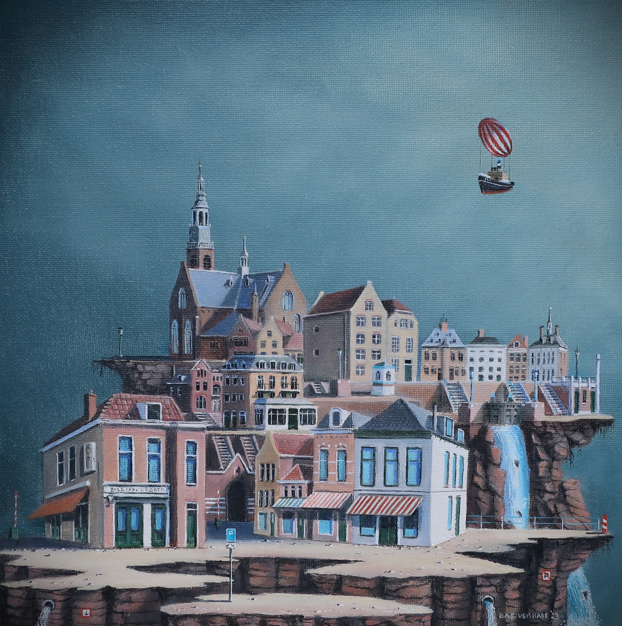 Bas Verkade schildert surrealistische taferelen (olieverf) met fotografische precisie.Zeer verfijnd werk op papier ,doek en paneel.