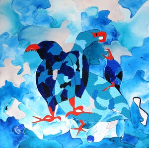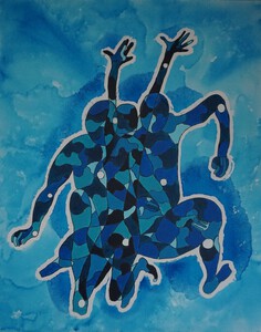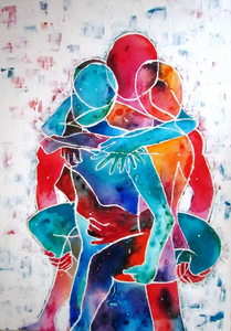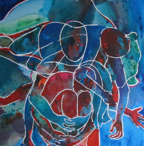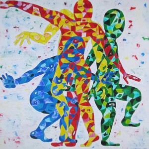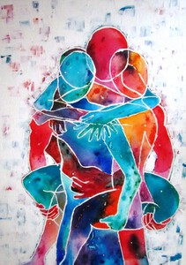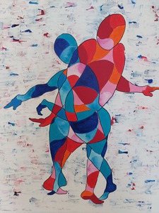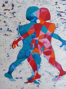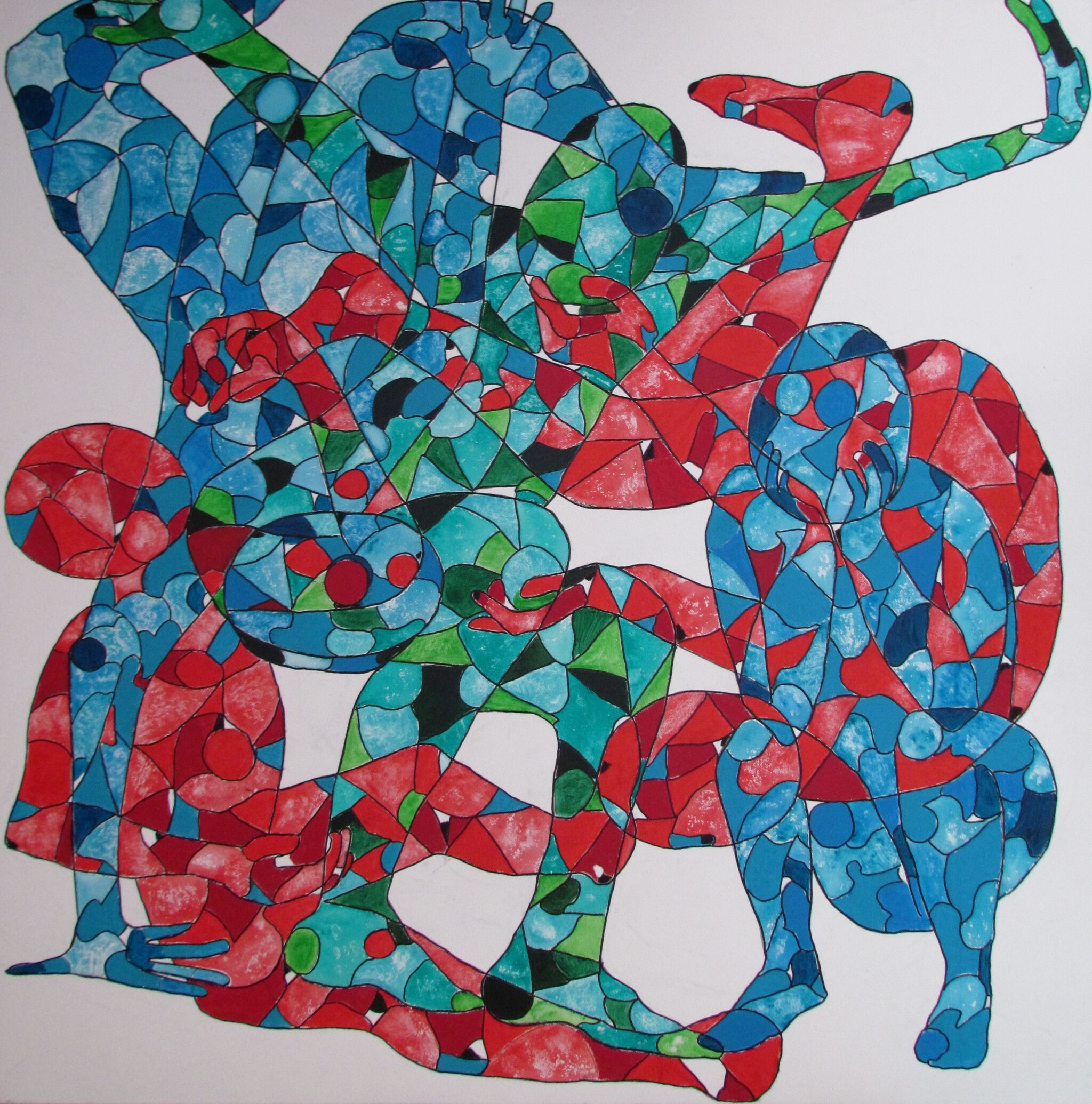 Gevarieerde schilderijen. Ingewikkelde abstract-figuratieve doeken, maar ook snel en intuïtief gemaakt abstract of realistisch werk. De mens en zijn emoties zijn een onuitputtelijke inspiratiebron.