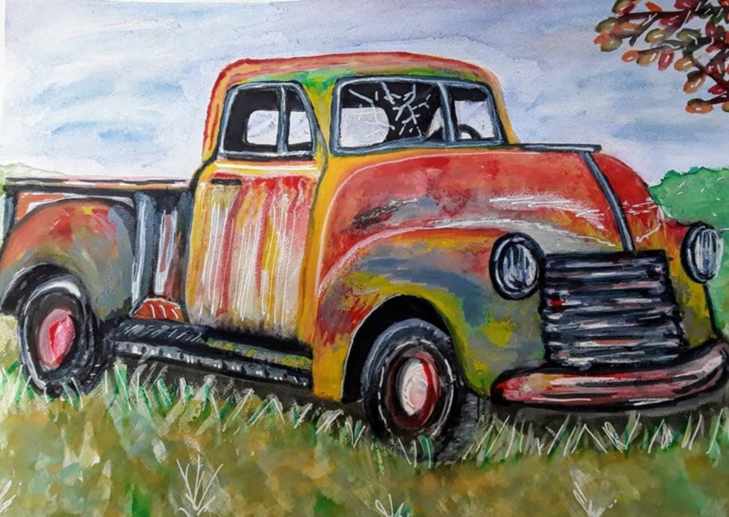 #oudeauto #oldrustycar #kapotteauto #oldtimer #aquarel #waterverftekening #waterverf #watercolordrawing