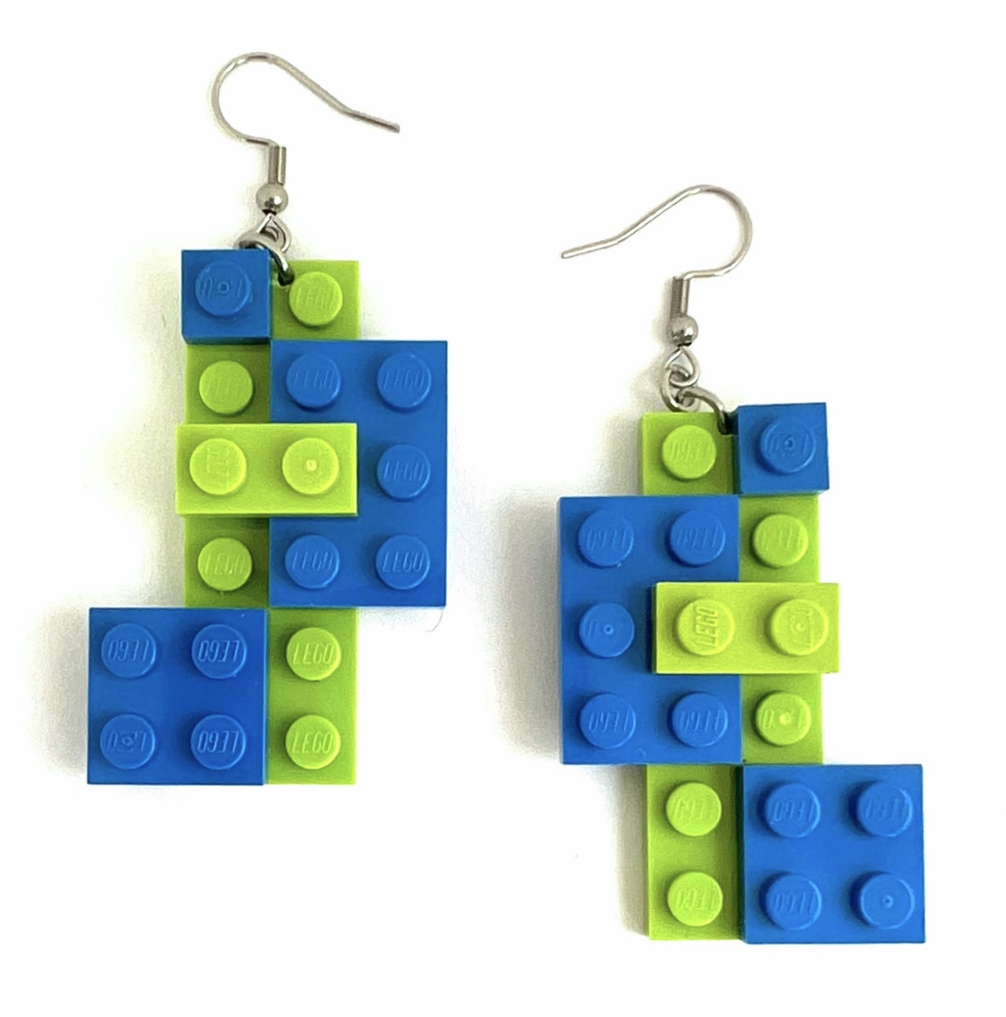Blauw groene oorbellen van Lego