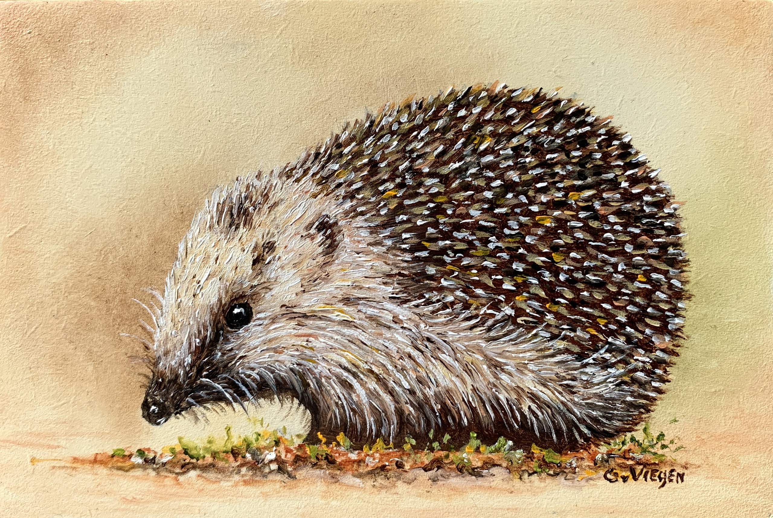 Wildlife Dier Egel Realistisch Olieverf Paneel Natuur Hedgehog Scharrelen Miniatuurschilderij