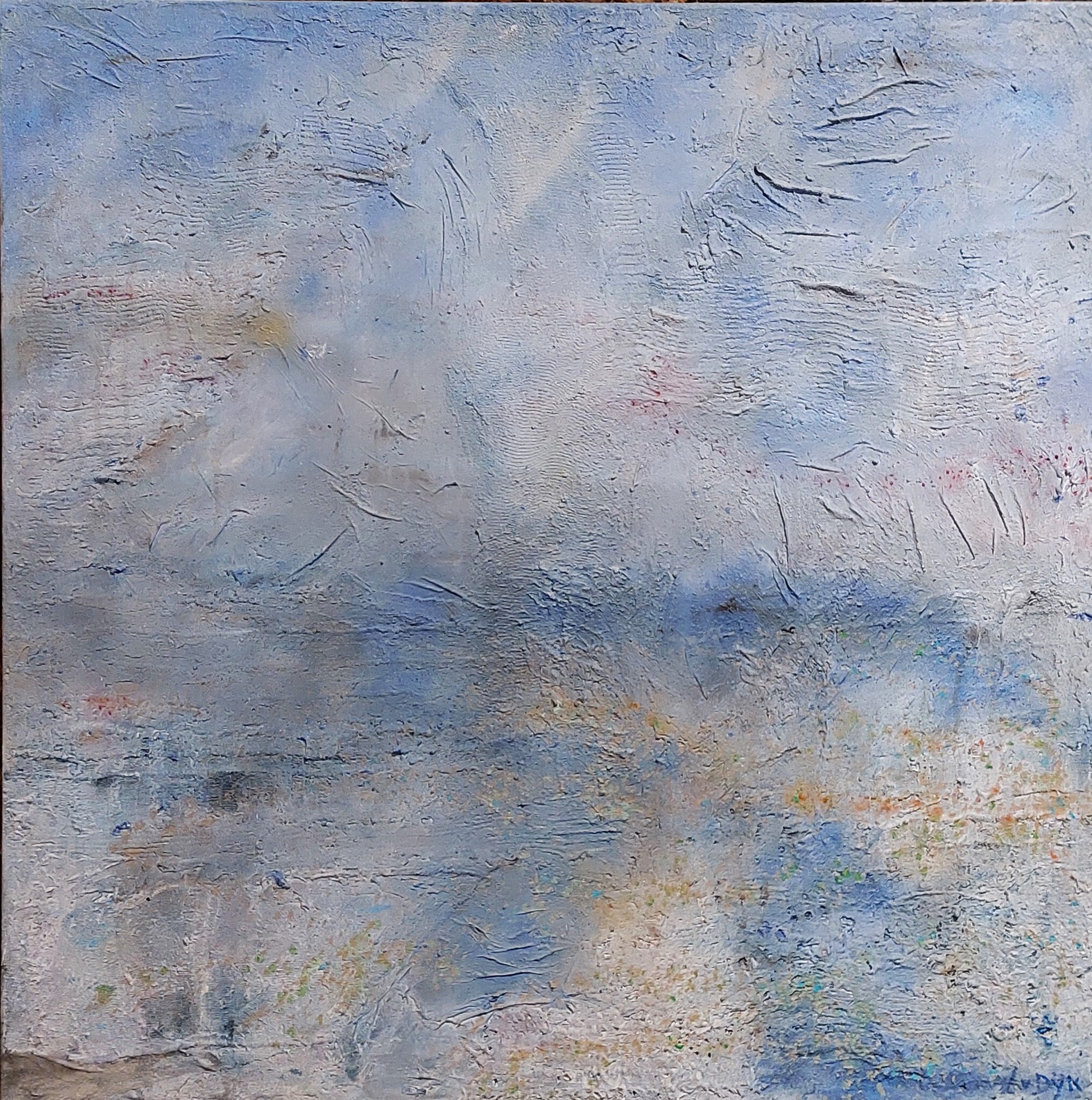 Iets in de buitenwereld intrigeert mij en door deze impressie uit te werken wordt zij blijvend deel van mijn binnenwereld. Laag na laag bouw ik aan de uiteindelijke vorm. Tijdens het werken komt er een stroom van associaties op gang. Het is een constant zoeken naar evenwicht tussen de verf en de andere materialen.