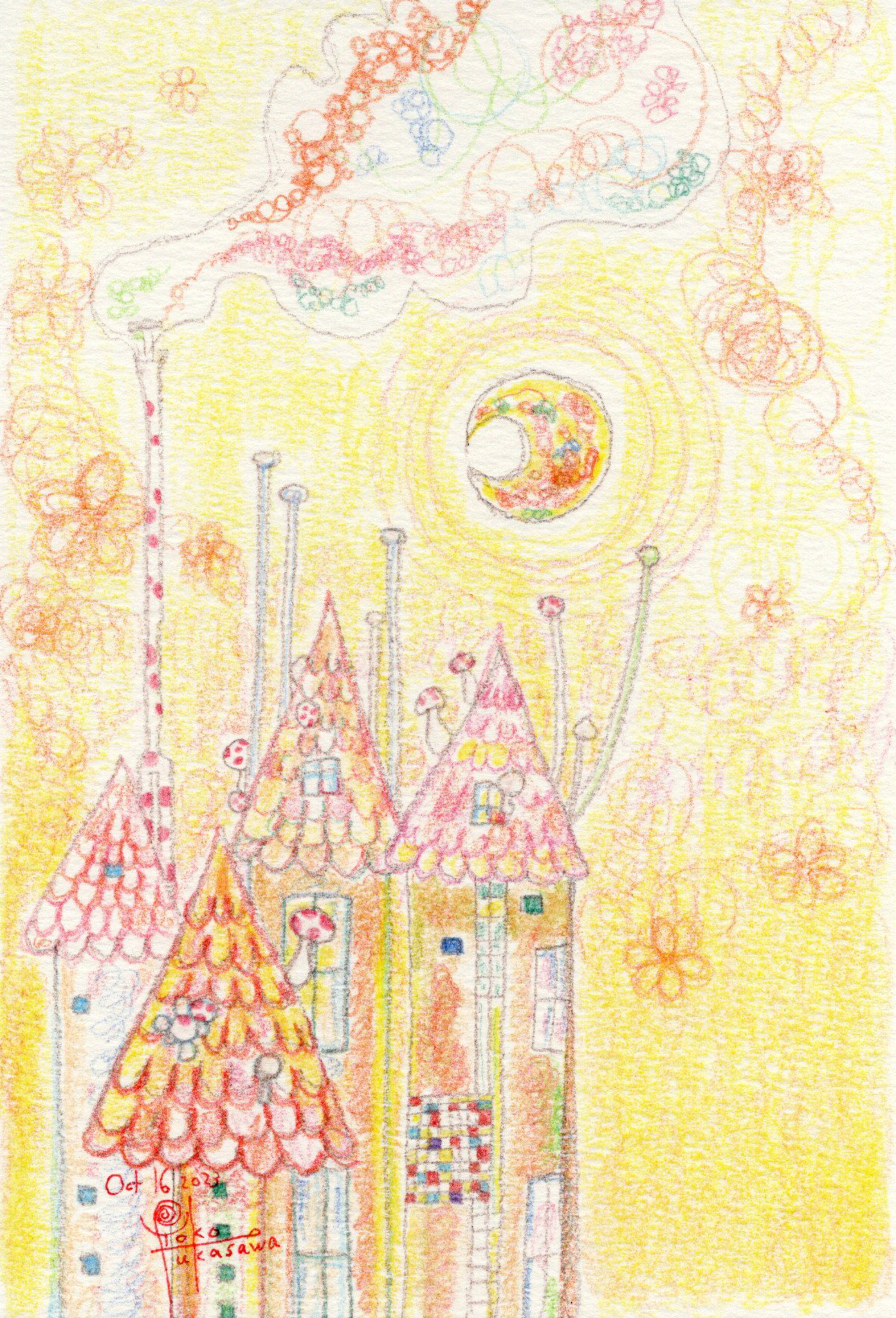 Yoko Fukasawa was born in 1982. 2001-Japan traditional craft department,Metal crafts major 2001-Volkswagen new Beetle - art contest The third place. 2002-TOKYO DOME - Tableware festival Fine work. 2017-And Schizophrenia has been revealed. Her paintings are outsider art. They are characterized by simple shapes and bright colors. She wants you to look at them and relax.