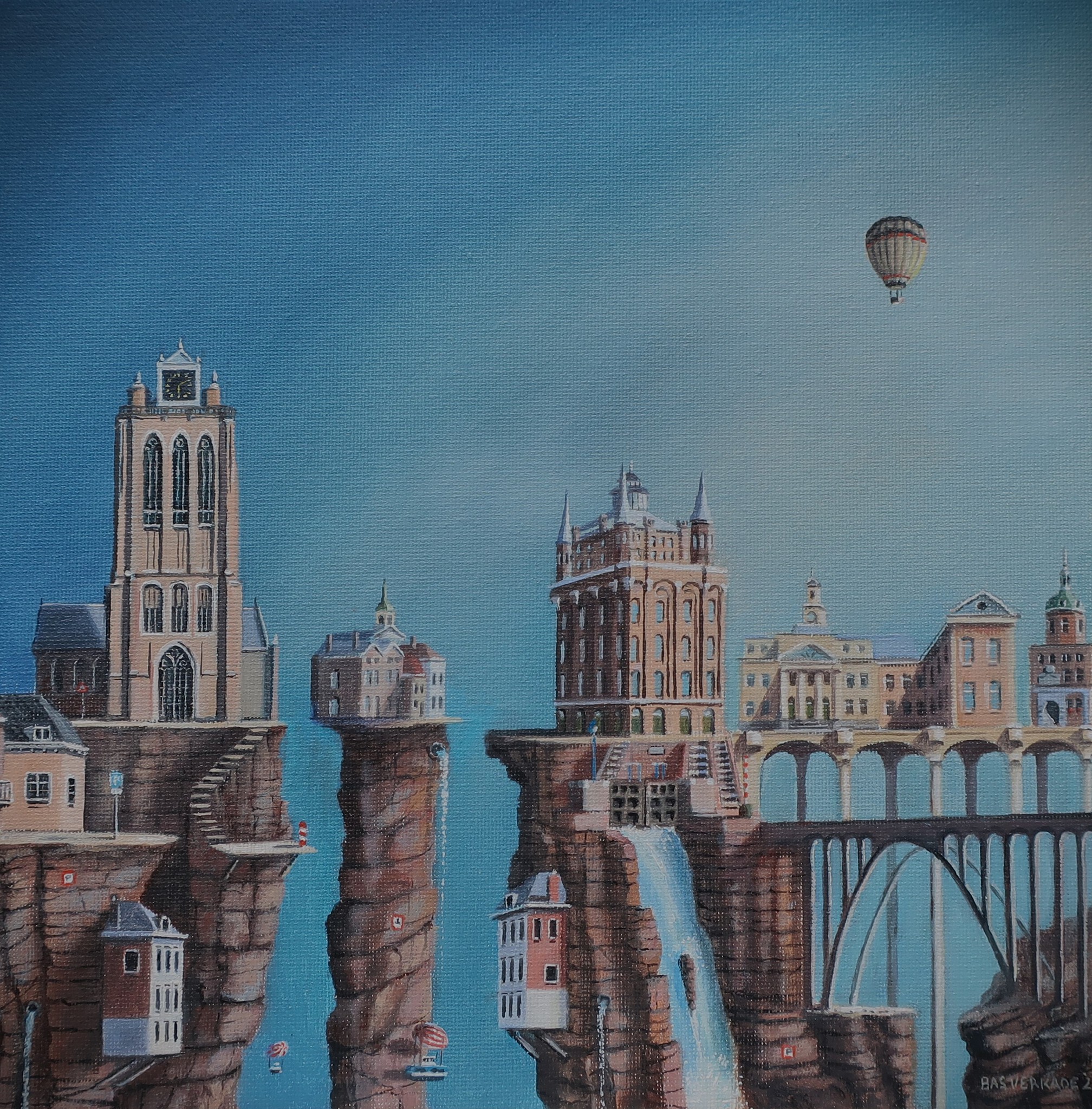 Bas Verkade schildert surrealistische taferelen (olieverf) met fotografische precisie.Zeer verfijnd werk op papier ,doek en paneel.