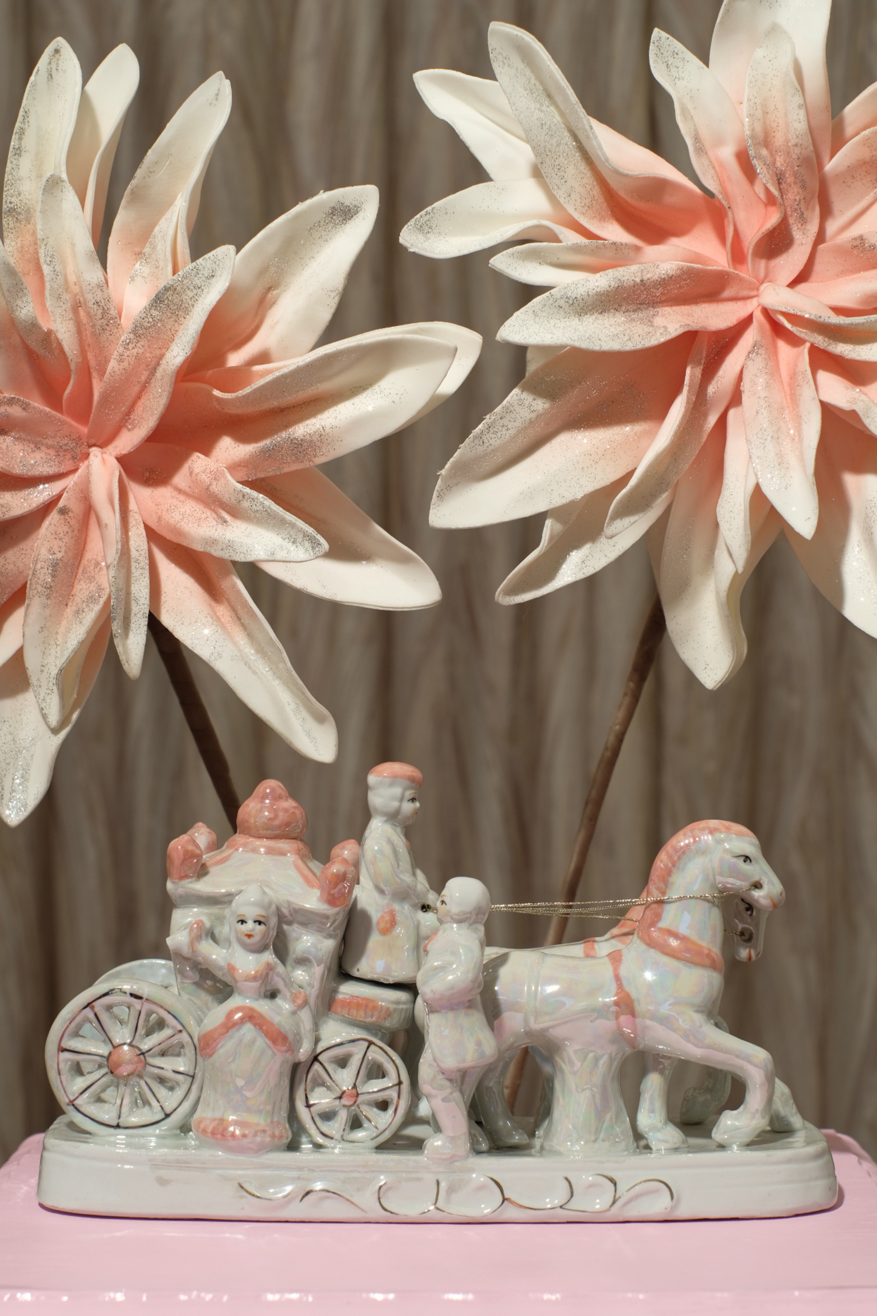Stilleven Roze Parelmoer Kitsch Koets Kunstbloemen