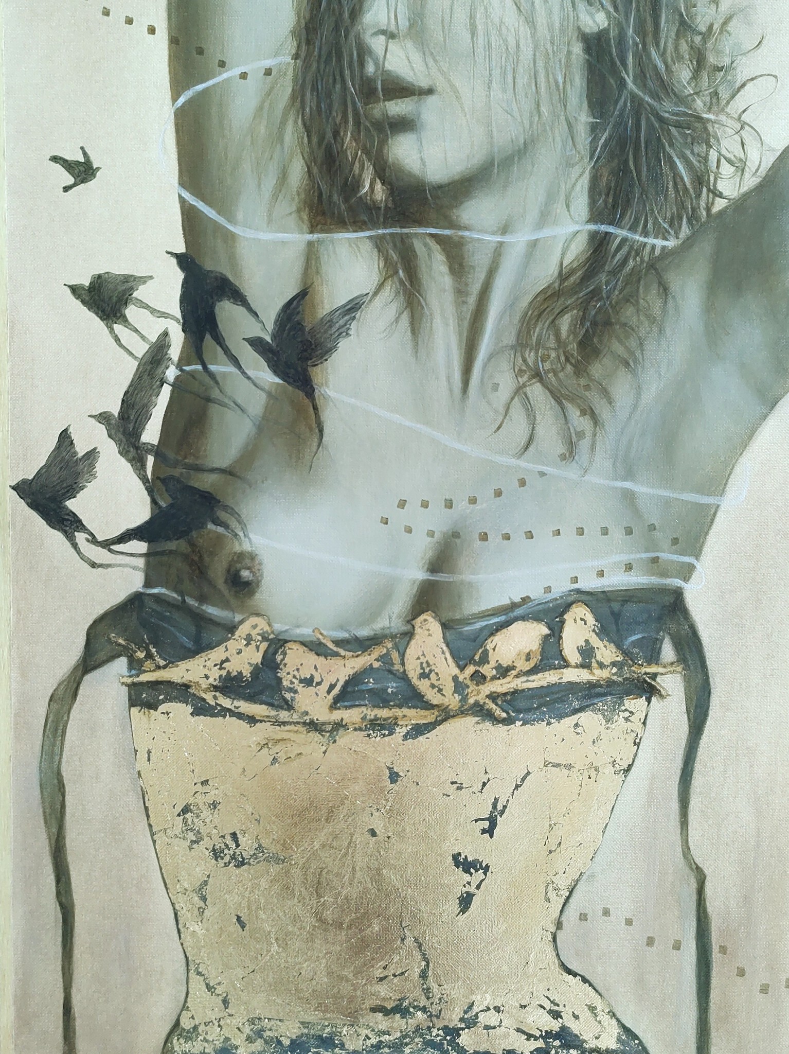 Vrouw Realistisch Olieverf Beige Mixmedia Monochromie @artvolova
