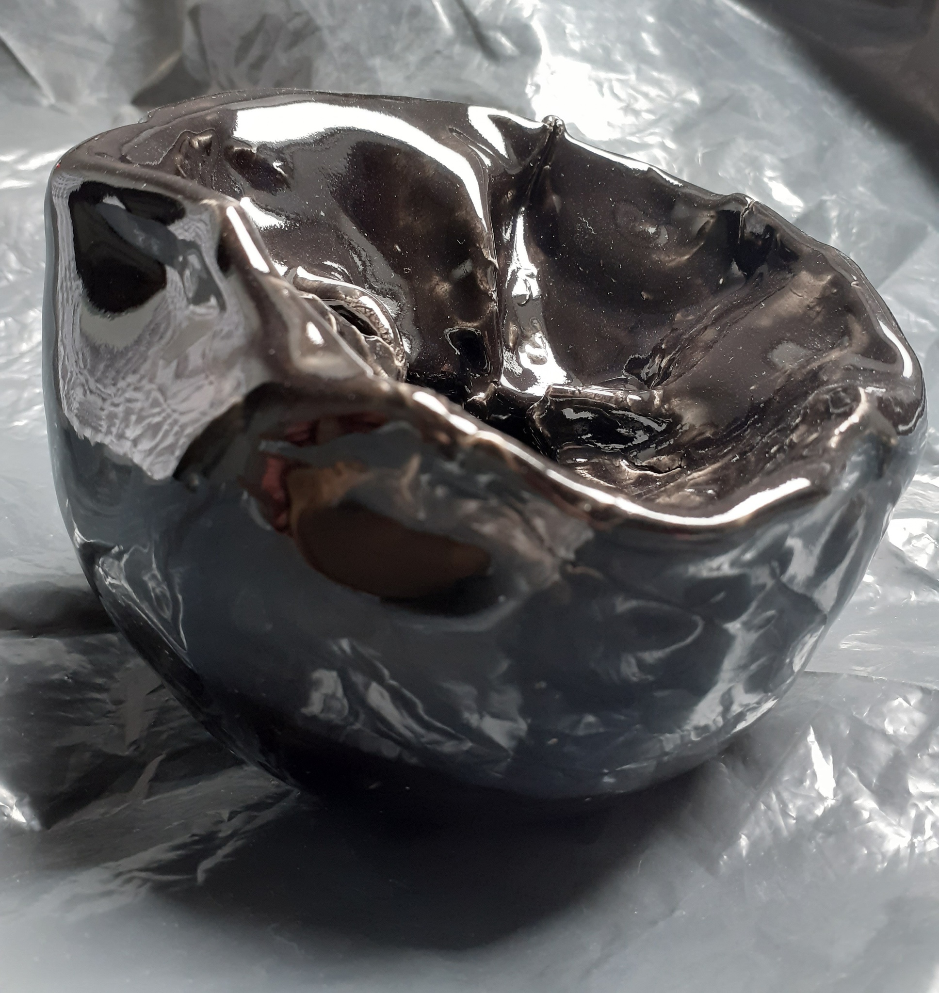 Dit sculptuur is gemaakt van keramiek en is aan de bovenkant kapot gemaakt. Het geeft weer dat het leven niet altijd gladjes verloopt.