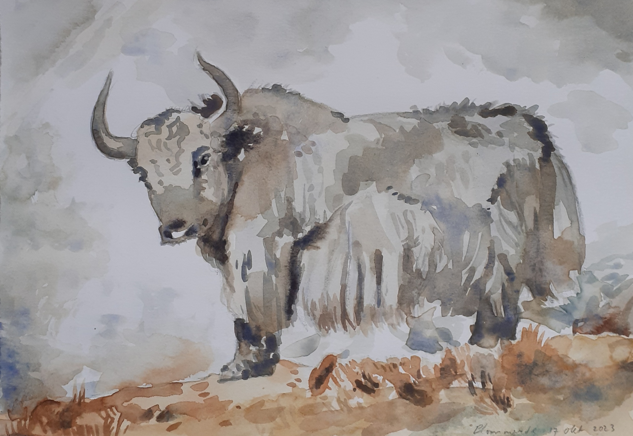 Figuratief Realistisch Yak Dier Aquarel Rund