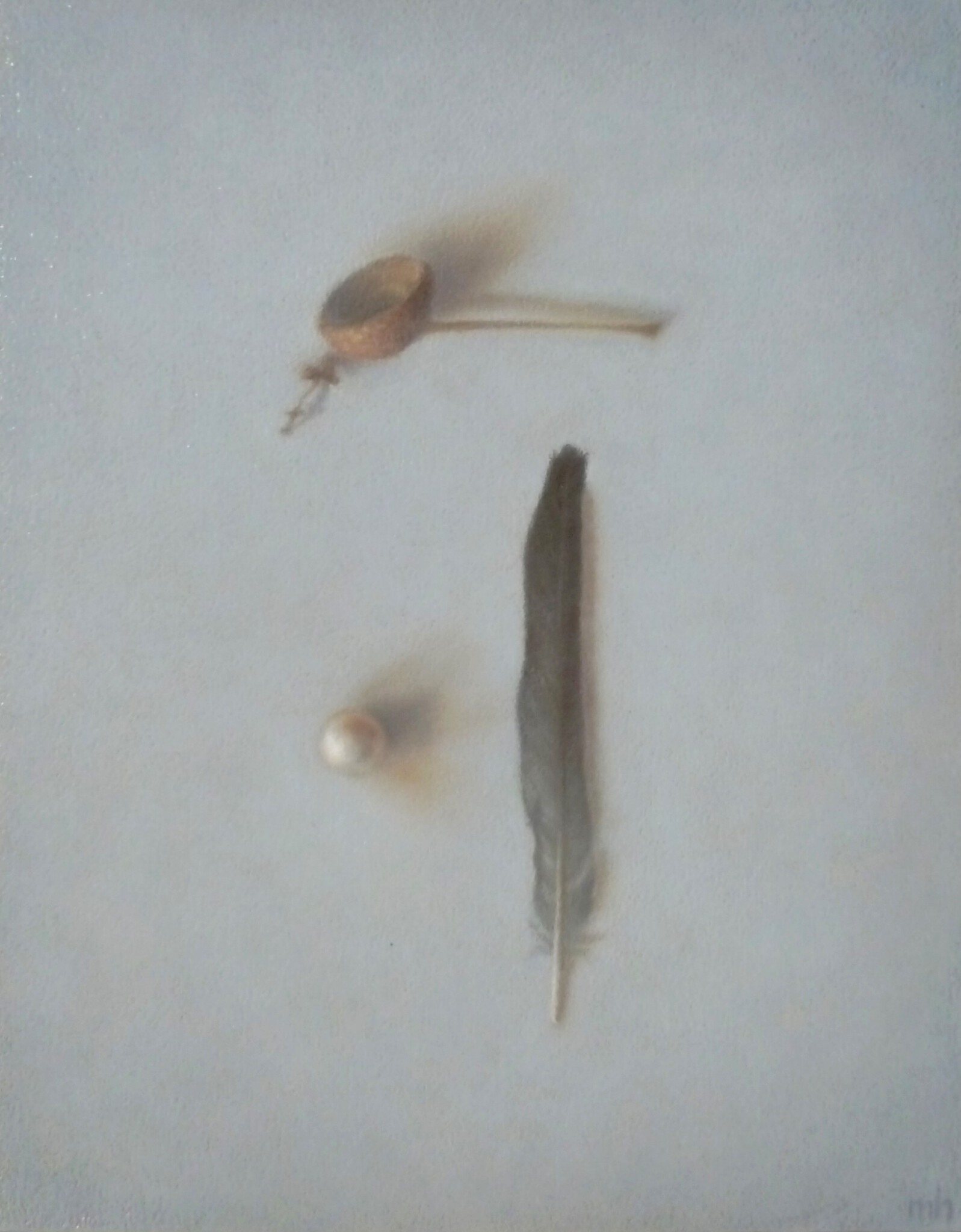 Realistisch Olieverf Stilleven Parel Veer Eikeldopje