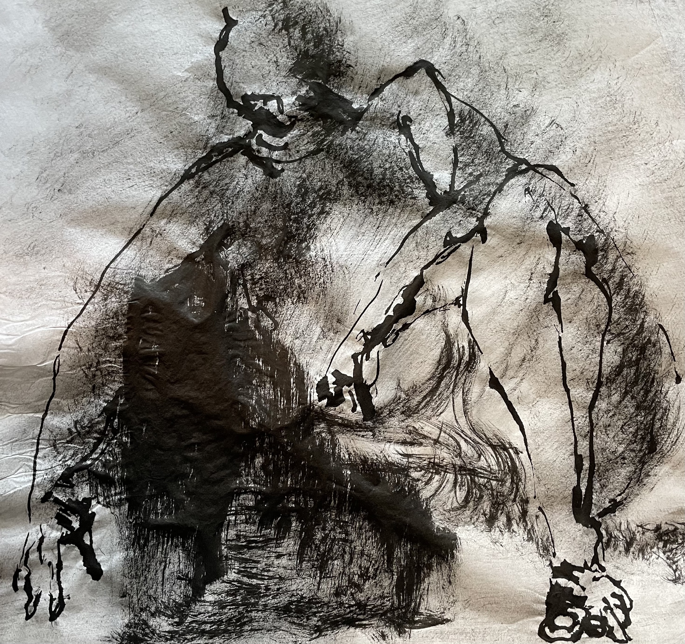 Inkt op Chinees papier op handgeschept papier.