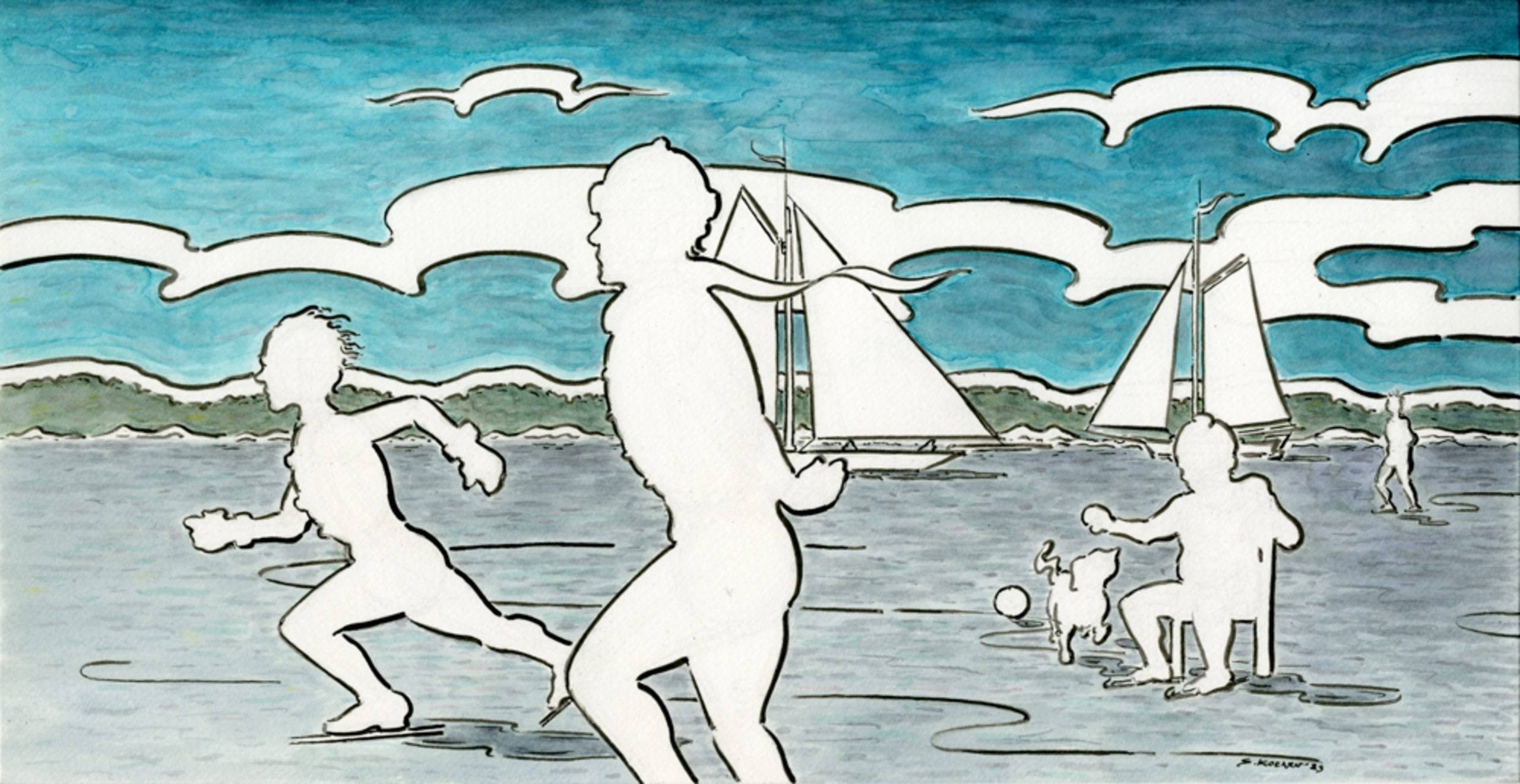 Indian ink & ecoline Penseel, fineliner Canson Montvat aquarelle paper, 300g 42x21,6 cm 2023