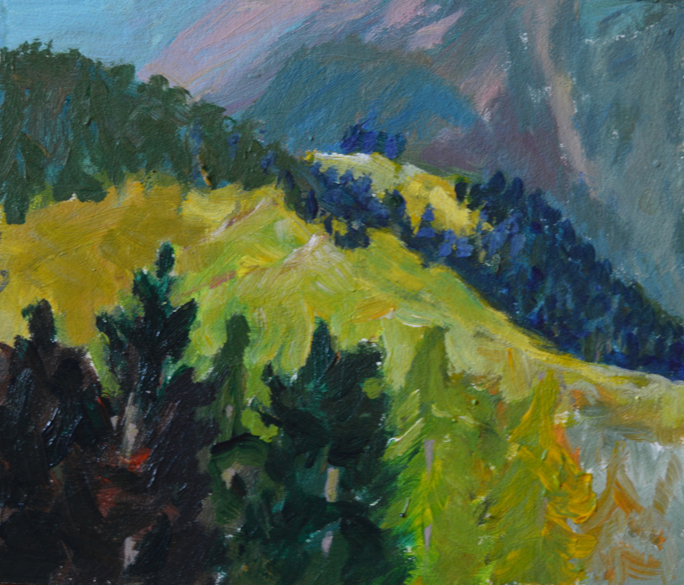 Sophie Bekkering toont in haar schilderijen en keramiek de grootse natuur. Begonnen vanuit wandelingen door de Gelderse bossen is ze inmiddels de bomen nagereisd tot aan en over de boomgrens. De ongerepte alpine ruimte waarin bomen, rotsen en water figureren.is haar speelveld.In haar schilderijen verbeeldt ze de onderliggende krachten van deze stille omgeving door middel van haar expressieve toetsen en levendige kleurcontrasten.