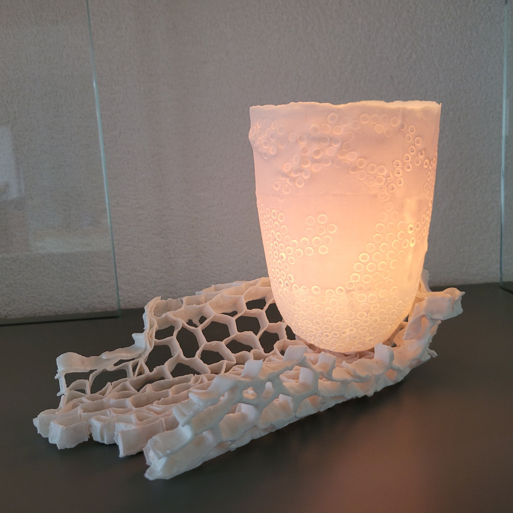 Fragiel en toch sterk, porselein. Kan een theelichtje in wat een sfeervol licht geeft of als vaasje dienen. Maar ook zonder deze toevoegingen is het een lust voor het oog.