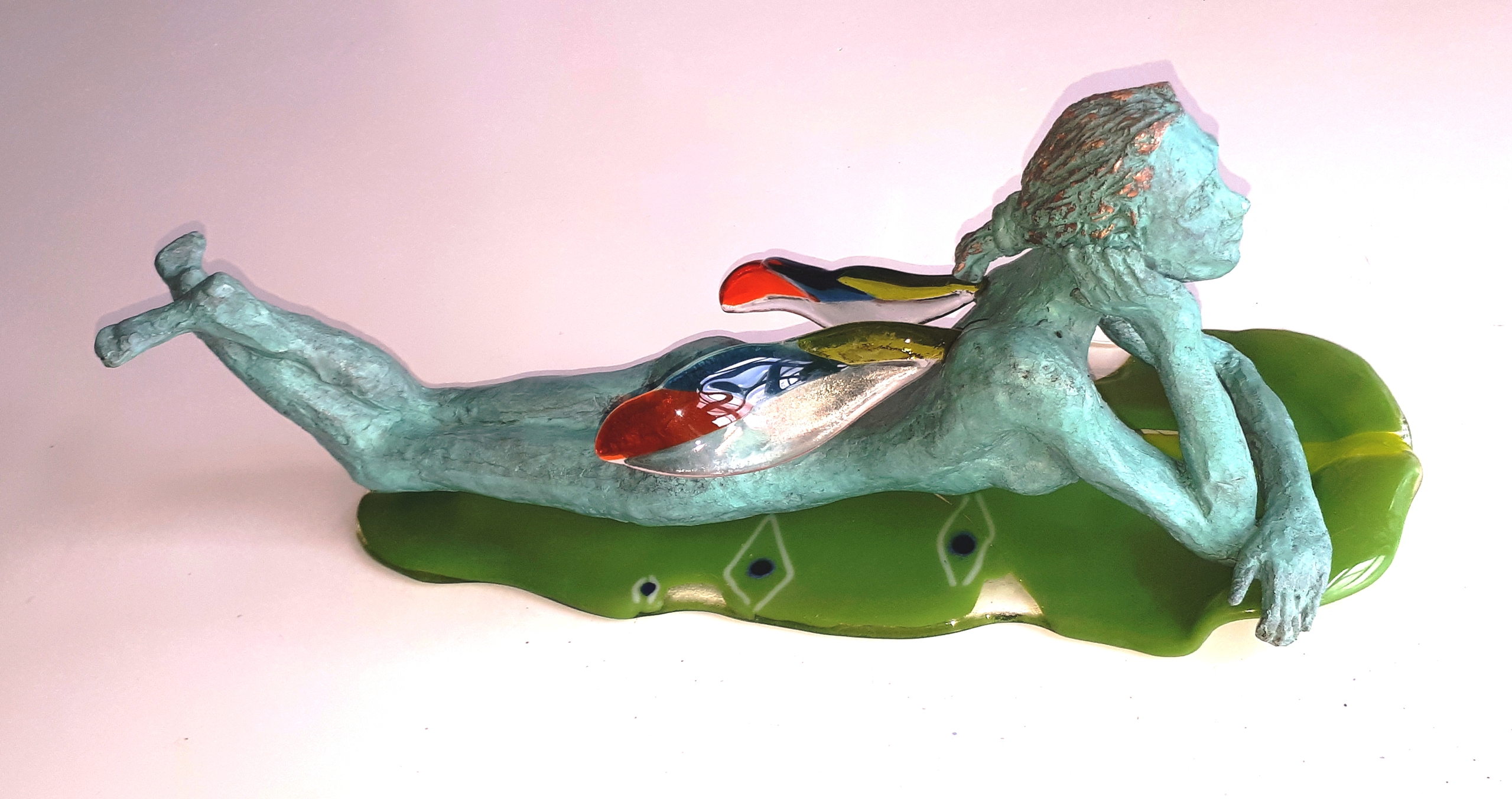 Oranje Blauw Brons Groen Glas Koper Blue Glaskunst Green Beeldje Orange Unicum Sculpture Bronze Glasfusie Glass Glassart Cupper Glassfusion Scheltema Louky Loukyscheltema