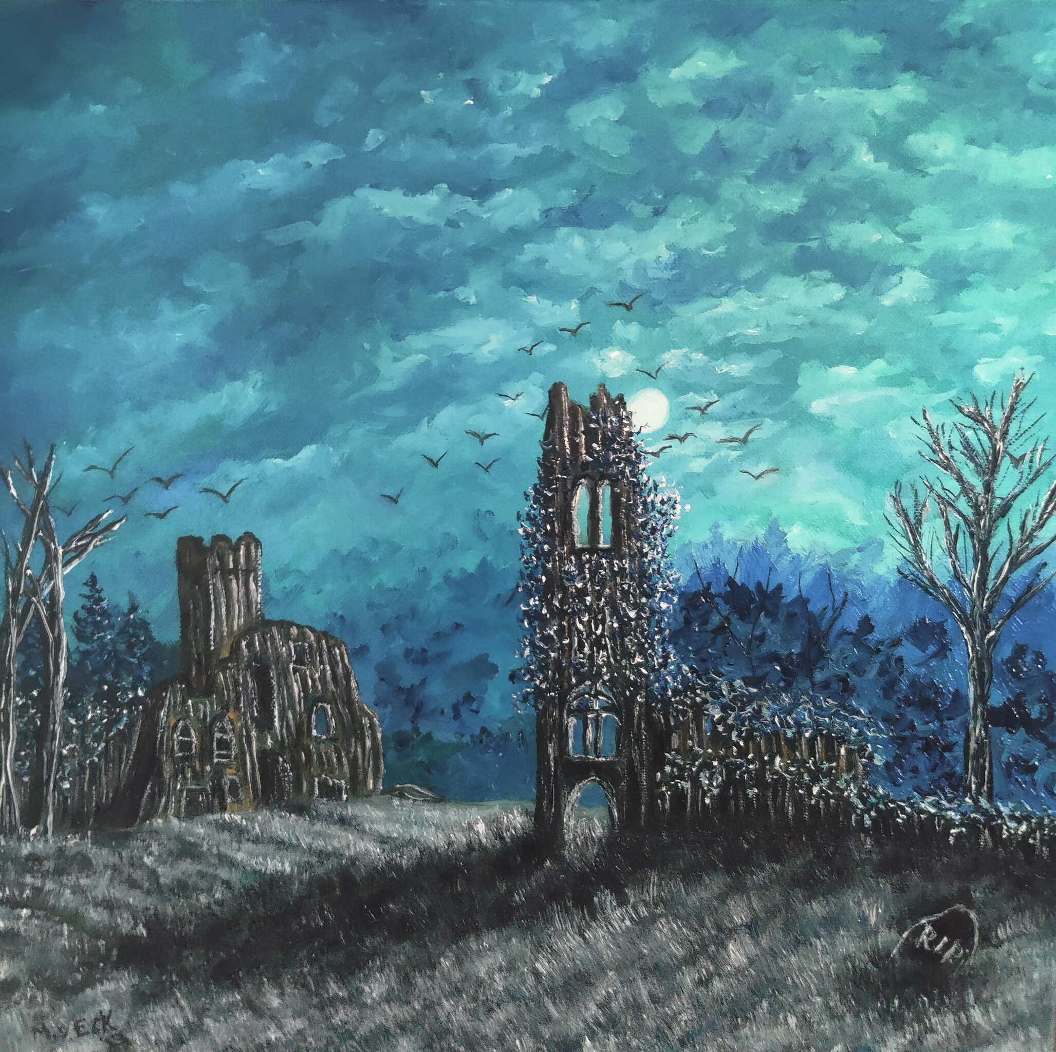 Hill of Slane, Olieverf op doek, Merel van Eck 2023. Eerder in oktober was ik in Ierland bij de Hill of Slane. Ik vind het zo'n magische en mooie plek, dat ik er een speciale Halloween editie van heb gemaakt. Happy Halloween, Blessed Samhain!