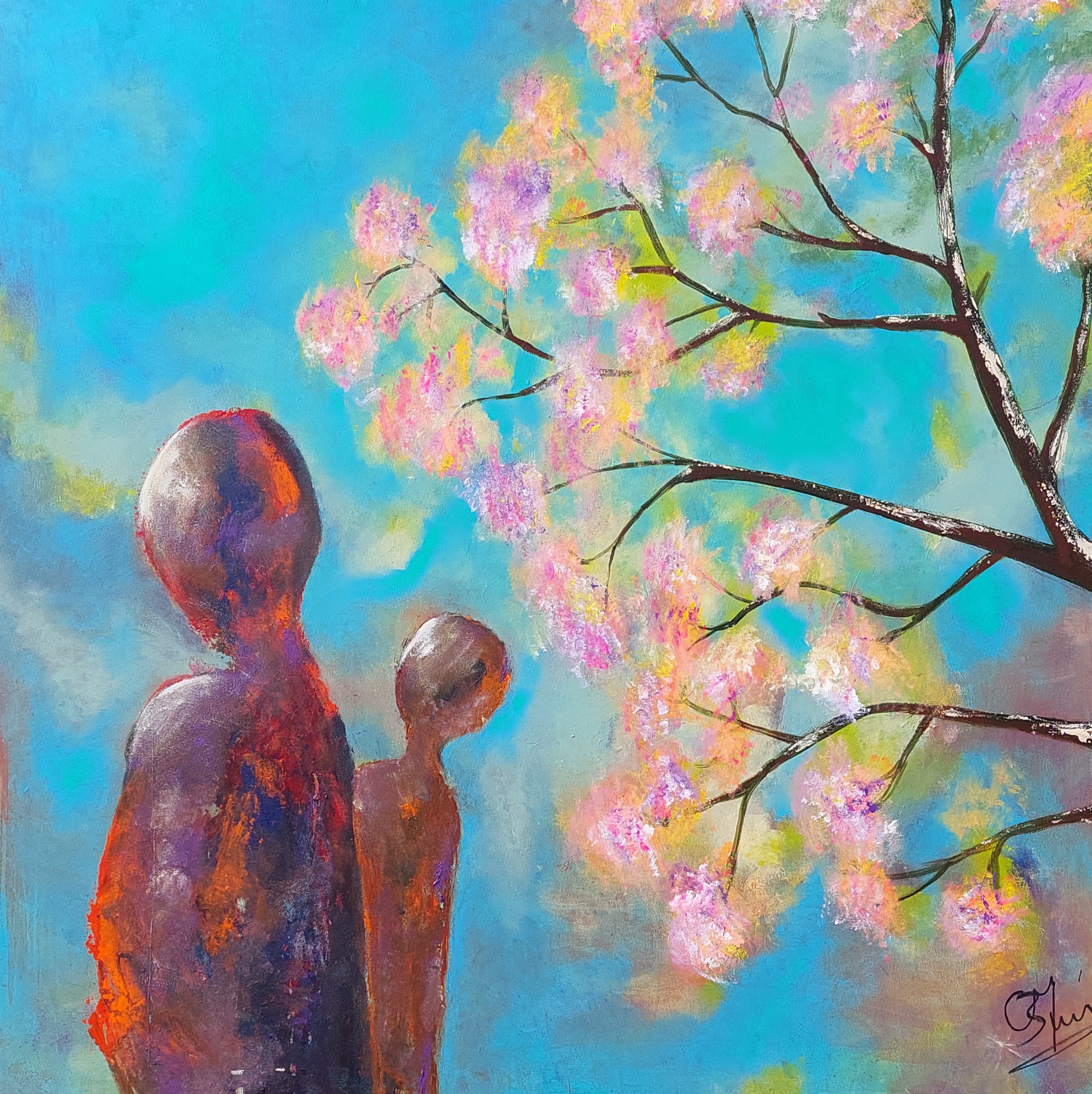 Sinds enkele jaren schilder ik vanuit mijn hart, intuitief ontstaan soms heel bijzondere elementen in mijn werk. Aan mij om dat wat verschijnt de aandacht te geven en het geheel te verbinden.