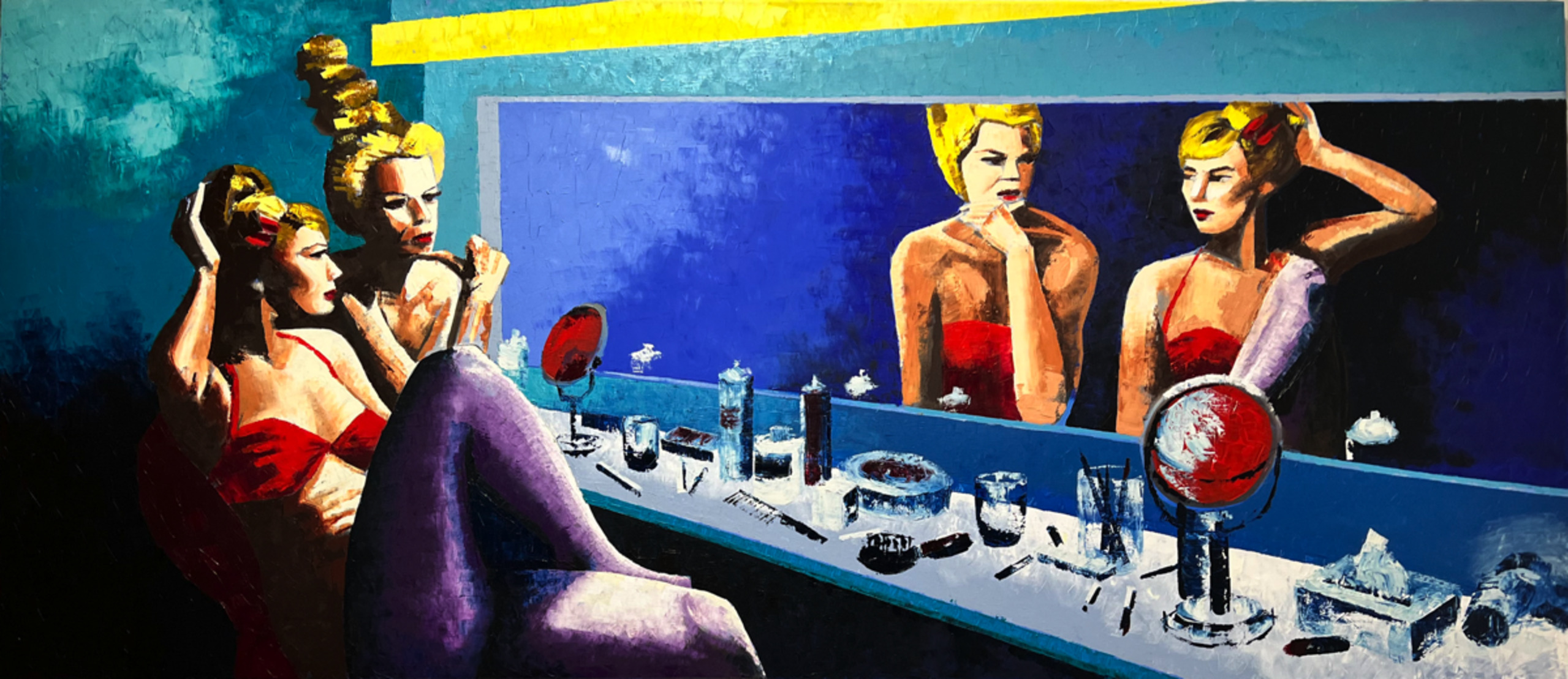 Sasart Olieverfschilderijen Schilderij Olieverf Kleurrijk Paletmes Theater Interieur Spiegel Actrices Vrouwen Kleedkamer Dressing Room Backstage Toneelstuk