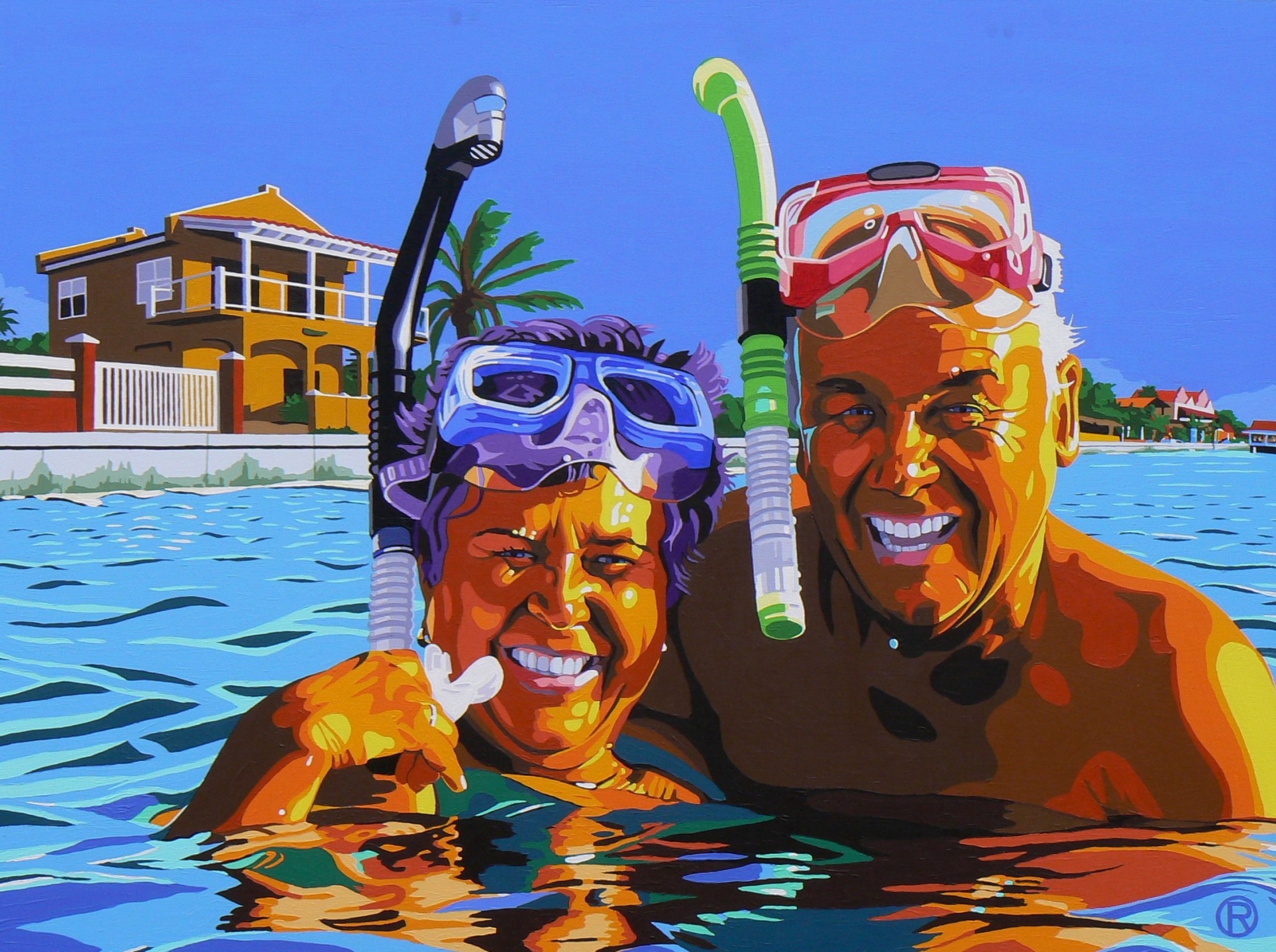 Wil & Hans Kok snorkeling in front of their Bonaire house.