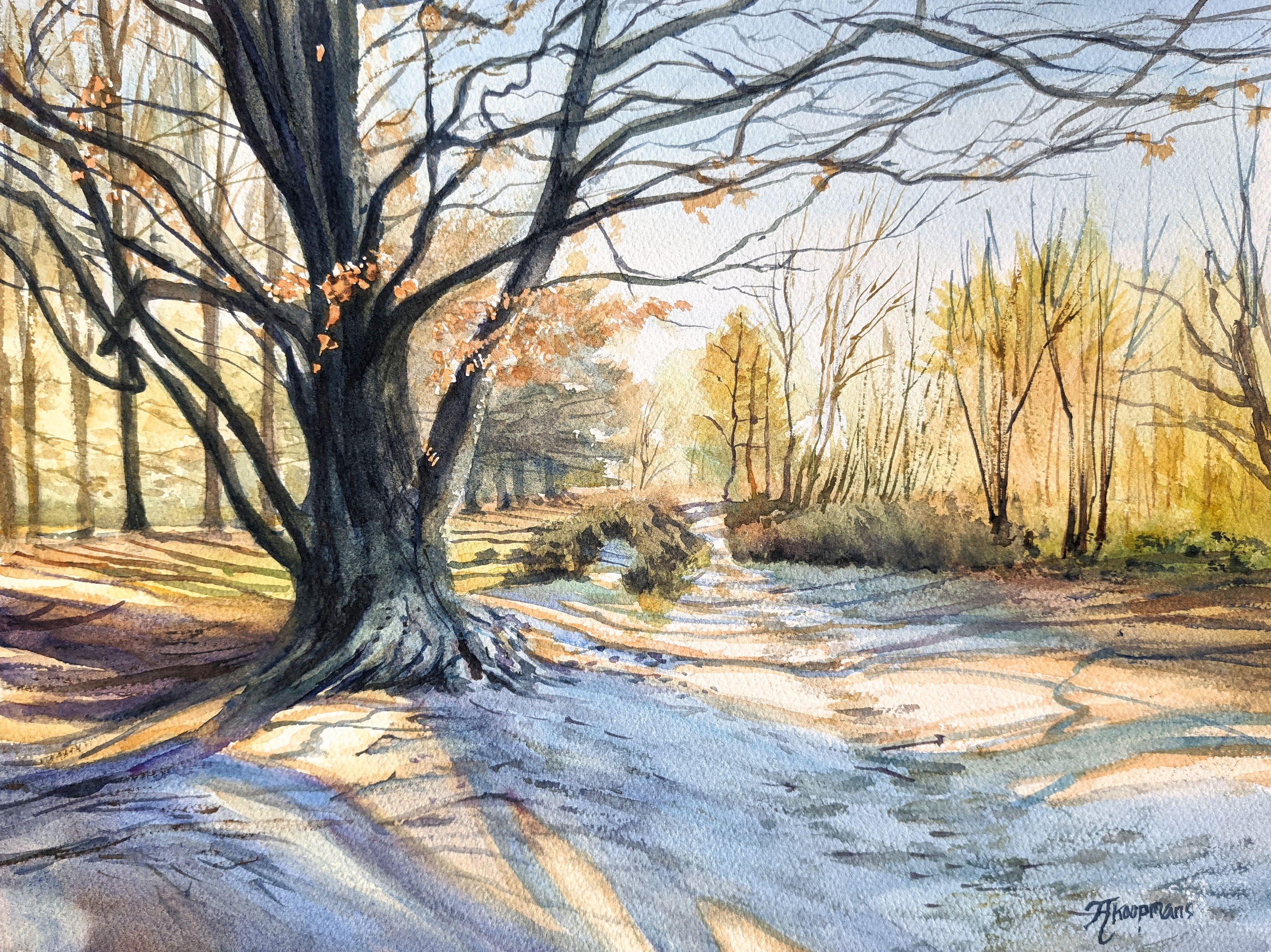 Bos Kaapse Bossen Bomen Boom Forest Trees Lente Spring Zonlicht Sunlight Aquarel Watercolor Realistisch